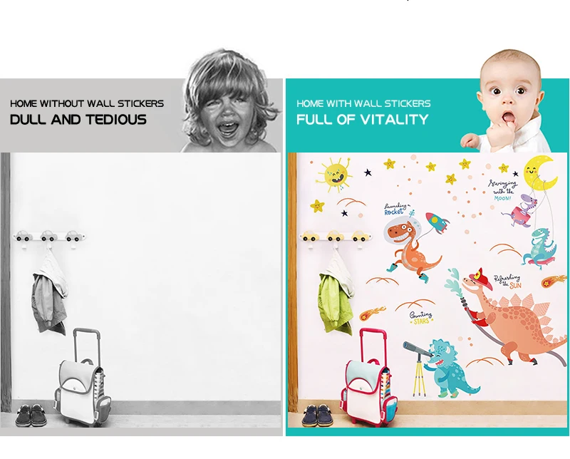 Самоклеящиеся наклейки с мультяшным Наклейка на стену динозавр и милым рисунком животных, украшение для детской комнаты, для мальчиков, спальни, украшение для стен, домашний декор