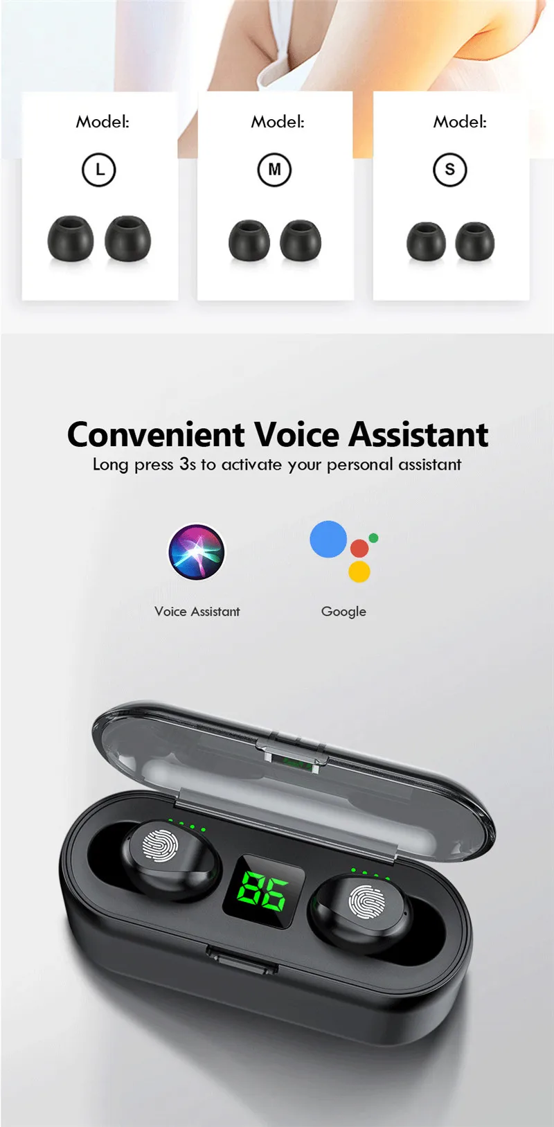 TWS-стереонаушники F9 с поддержкой Bluetooth 5,0 и зарядным футляром