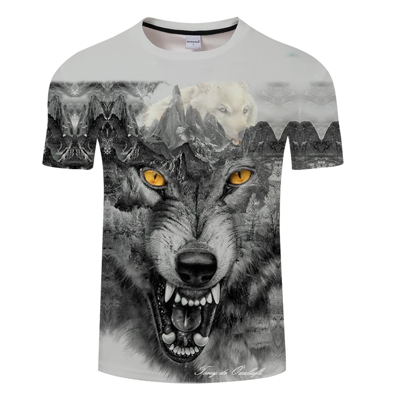 Мужская одежда, новинка 2021, крутая футболка с 3D-принтом волка в ...