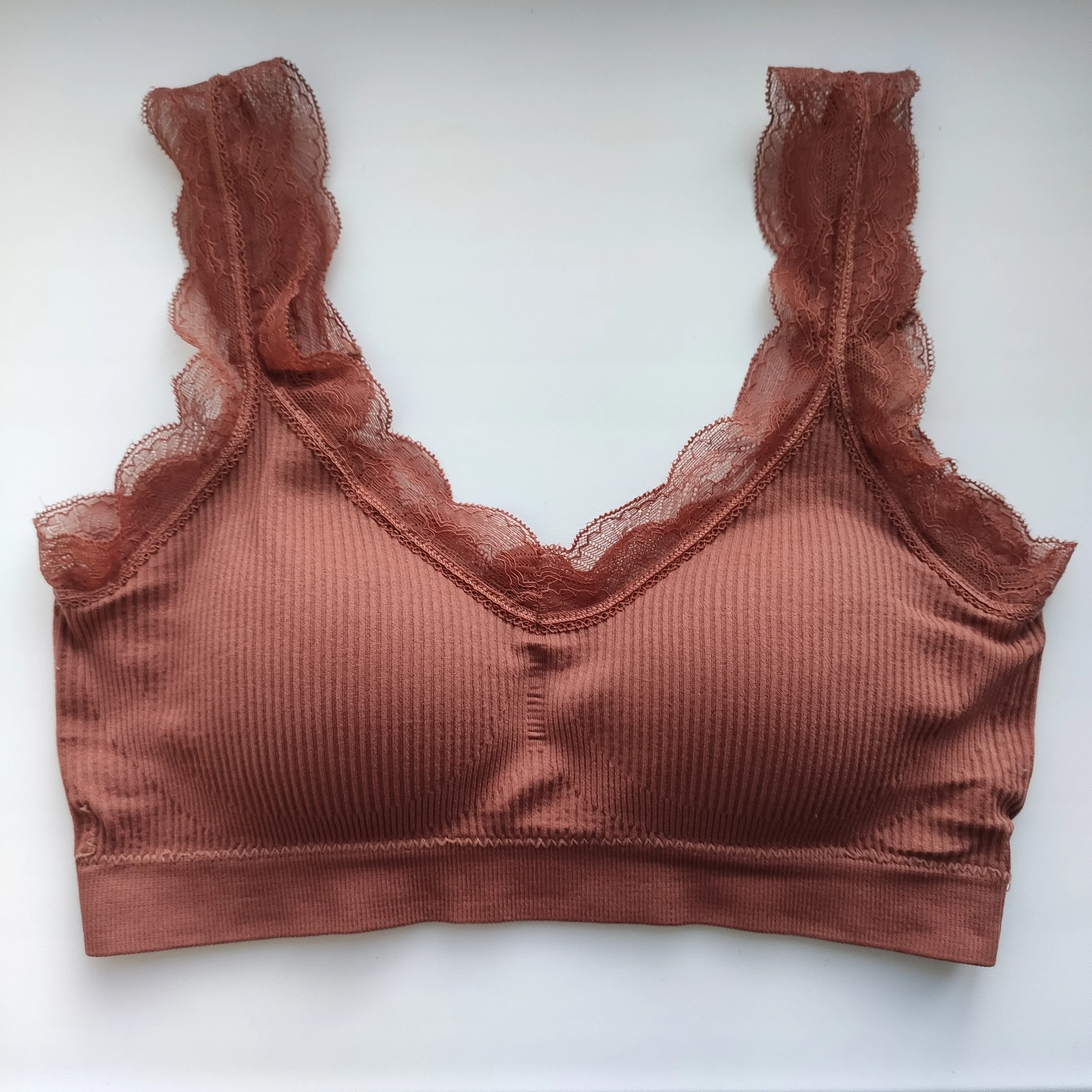 Ткань очень приятная, мягкая. Чашечка изнутри вытаскивается если надо. Подойдёт на размер 42-44. Доставка три недели, быстрая отправка. Заказом довольна.