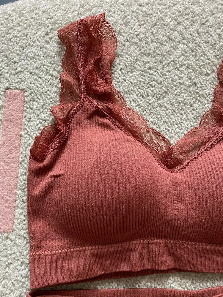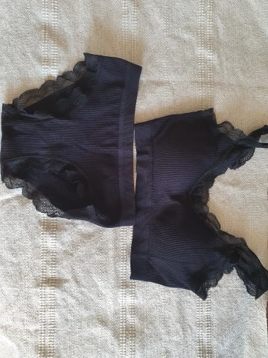 Приехал комплект в пакете. При распаковке неприятного запаха не было. Сшит качественно, все строчки ровные, ниточки не торчат. Комплект очень классный, удобный и комфортный. Кружево мягкое, не колит. Топ имеет вставные чашечки, при желании их можно вытащить. Чашечки плотноватые, грудь держат отлично. Комплект эластичный и хорошо тянется. Топ не имеет застёжек. Материал: полиэстер, спандекс. У продавца 6 расцветок на выбор. Комплект идёт в едином размере. На параметры: обхват груди 82, под грудью 70, талия 60, бёдра 88 см., сел идеально. Подойдёт и на параметры больше моих. Доставка 20 дней, трек-номер отслеживался.