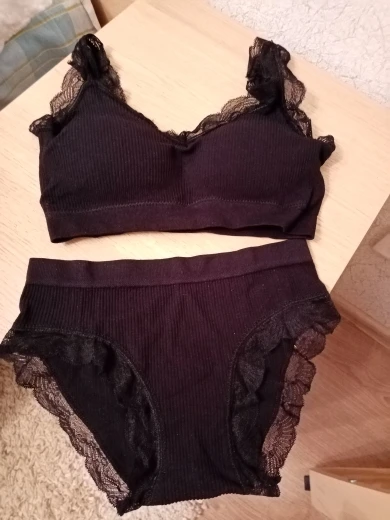 Бомбезный комплект! Приятный к телу, удобный и хорошо тянется, легко снимаются чашечки, без запаха, все как нужно. Размер идеально подошёл! Я заказала чёрный, закажу ещё белый, бежевый и розовый. Я очень рада, спасибо продавцу!