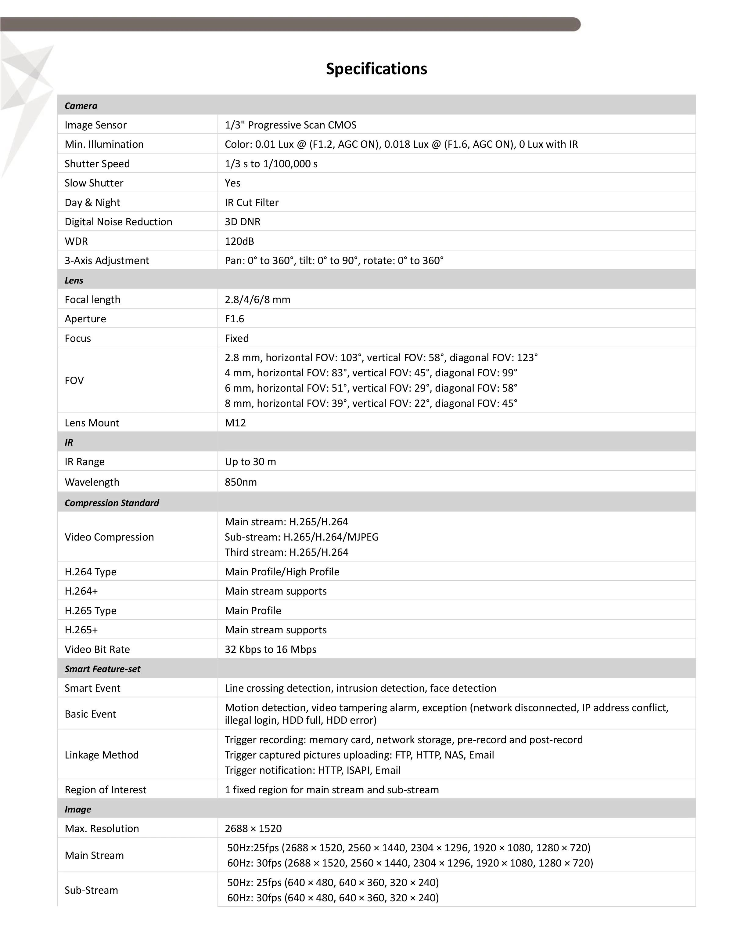 минимальная освещенность люкс0.01 Lux @ (F1.2, AGC ON), 0.018 Lux @ (F1.6, AGC ON), 0 Lux with IR