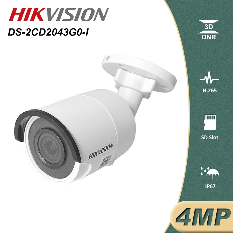 Hikvision 4-мегапиксельная цилиндрическая IP-камера видеонаблюдения с питанием по Ethernet, модель H.265 + для домашнегонаружного наблюдения IP67, ночное видение, система видеонаблюдения
