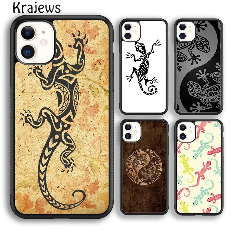 Твёрдый чехол для телефона krajew племенные ящерицы Gecko ying yang для iPhone 6s 7 8 plus X XR XS 11 12 13 pro max Samsung Galaxy S8 S9 S10