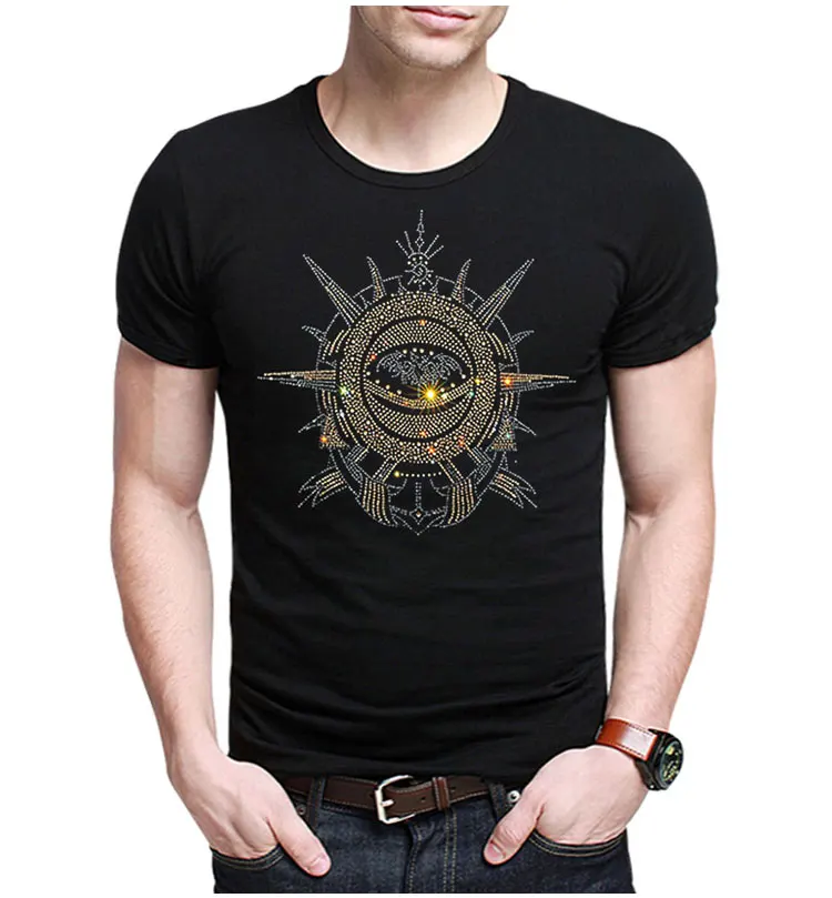 Мужская хлопковая футболка MYDBSH T023, для фитнеса, бодибилдинга, тренировок, летняя брендовая одежда, с принтом стразы, с коротким рукавом, повседневная