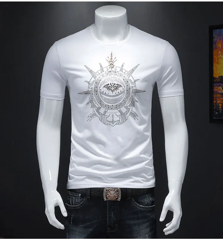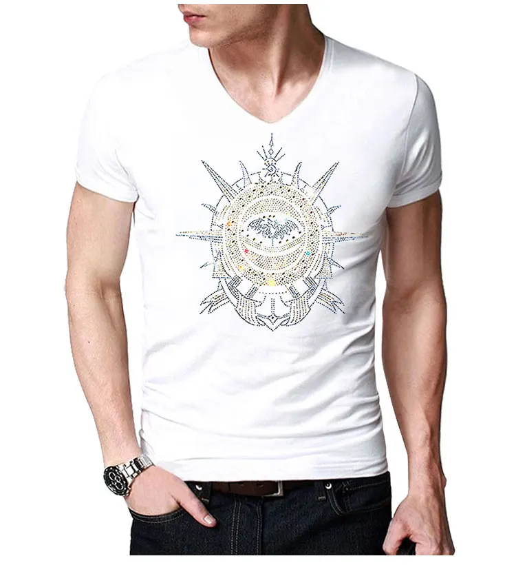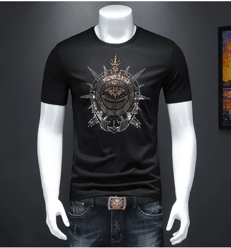 Летние мужские футболки с птицами и стразы, мужские хлопковые футболки с орлом и бриллиантом, с V-образным вырезом и коротким рукавом, мужские футболки, модная футболка, Размер 5XL