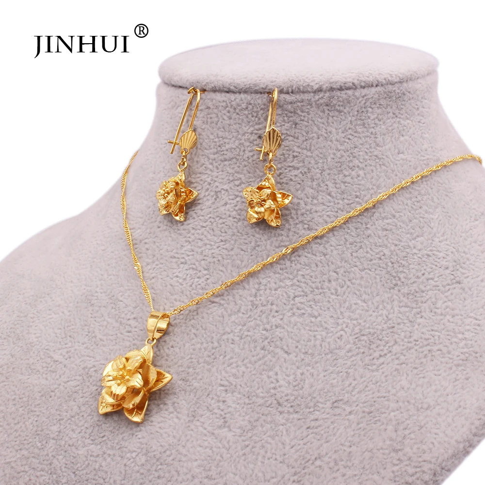 Комплект женских ювелирных украшений, подвеска с африканскими цветами и серьги золотого цвета в ожерелье для подарков