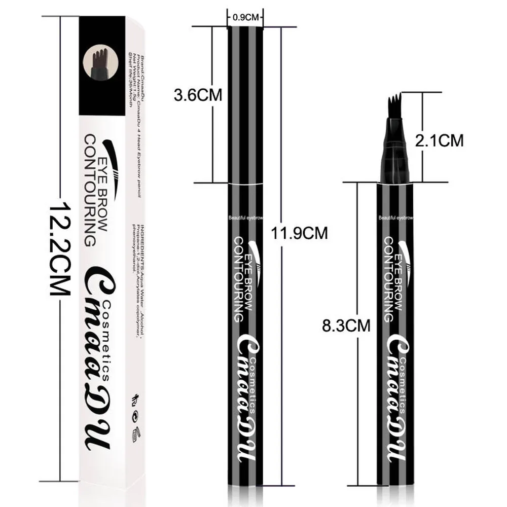 Микроблейдинг для бровей, тату-ручка, 4 вилки, водонепроницаемые, долговечные, черный, кофейный, серый, карандаш для бровей