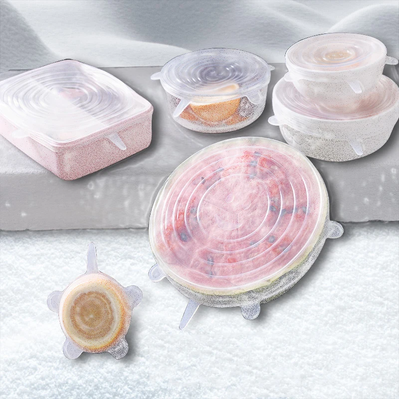 6 шт Силиконовые растягивающиеся многоразовые герметичные крышки для пищевых продуктов, сохраняющие свежее уплотнение, Эластичные крышки для кухонной посуды