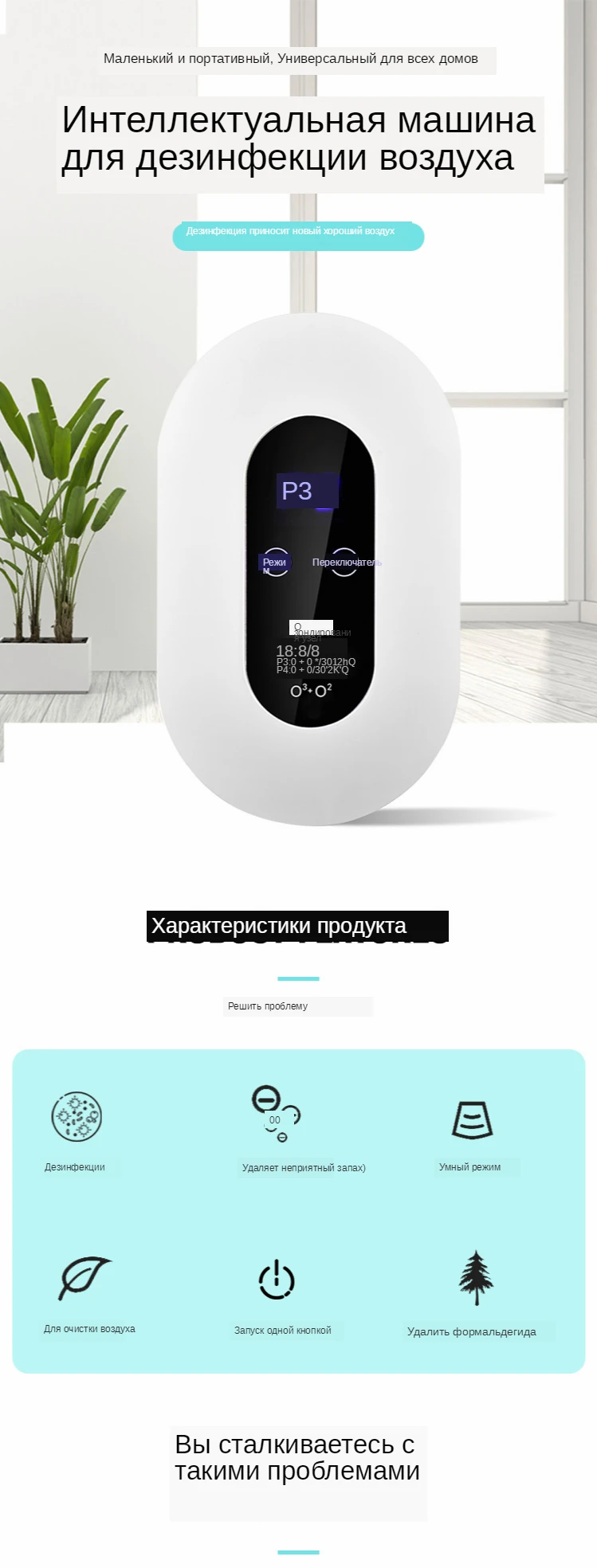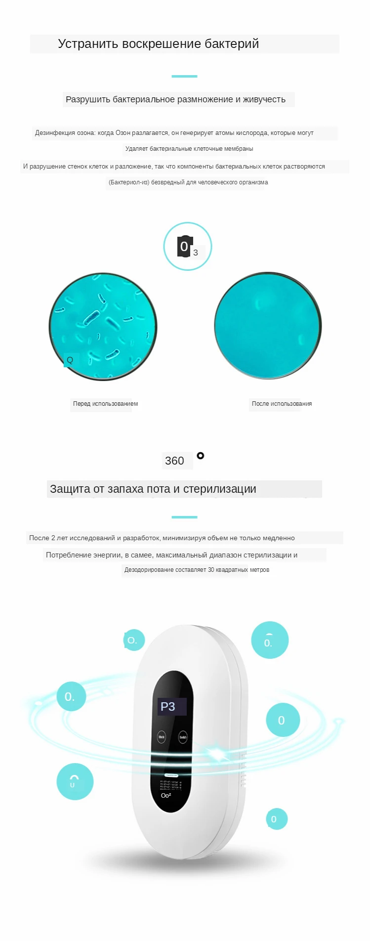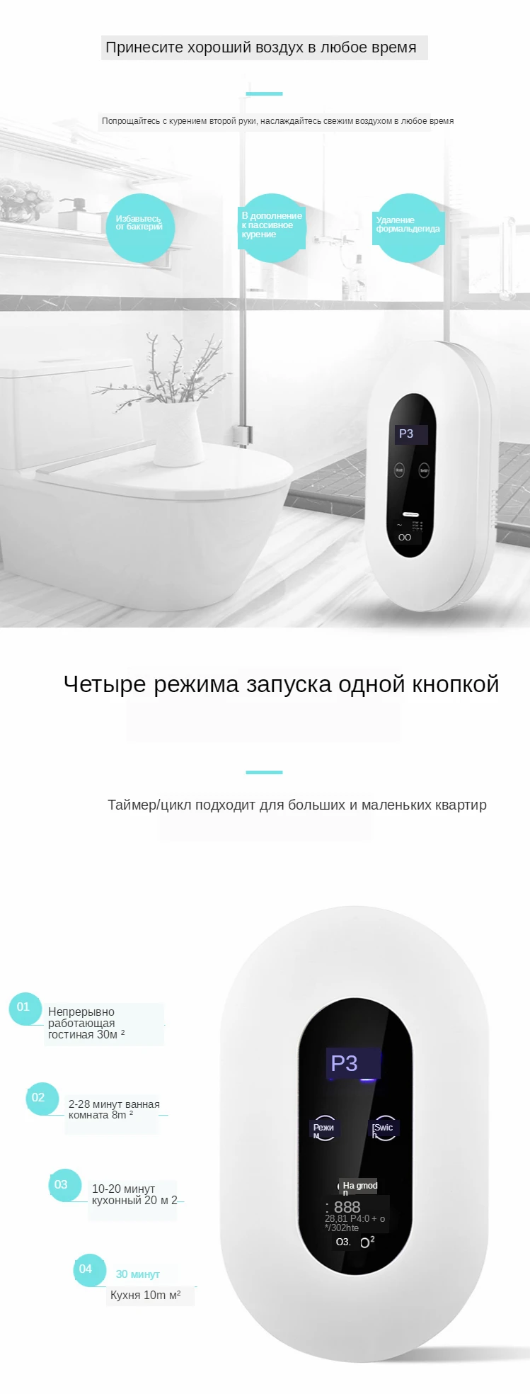 Бытовой генератор озона аппарат для дезинфекции, очиститель воздуха для ванной, спальни, кухни, питомца, четыре режима ионизатора