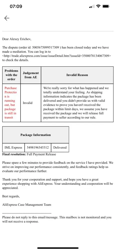 товара как сказал продавец с доставкой с России нет в наличии, предложил с Китая я отказалась и падала на возврат денег,он типа мне отправили заказ но нечего на самом деле не отправил, открыла спор и мне вернули деньги.