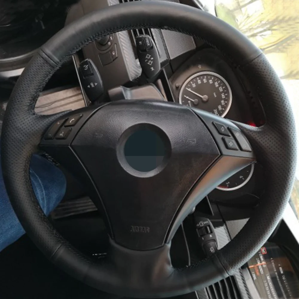 DIY ручной работы черного цвета из искусственной кожи чехол рулевого колеса автомобиля для BMW E60 523 523li 525 520li 530 535 545i