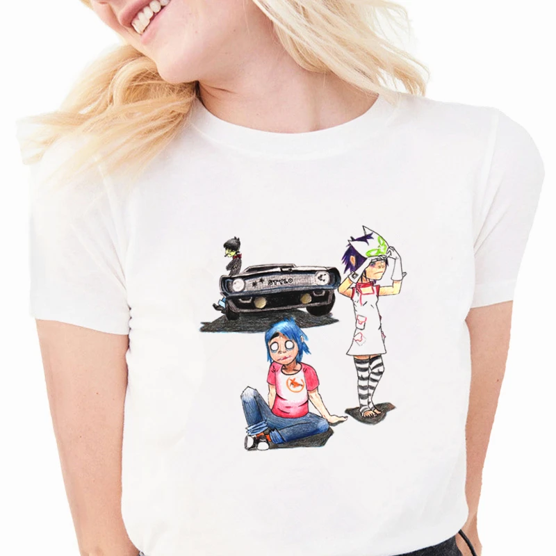 Gorillaz рок-группа чакхан лапша Murdoc Russel футболки летняя повседневная женская футболка с коротким рукавом женские топы футболки