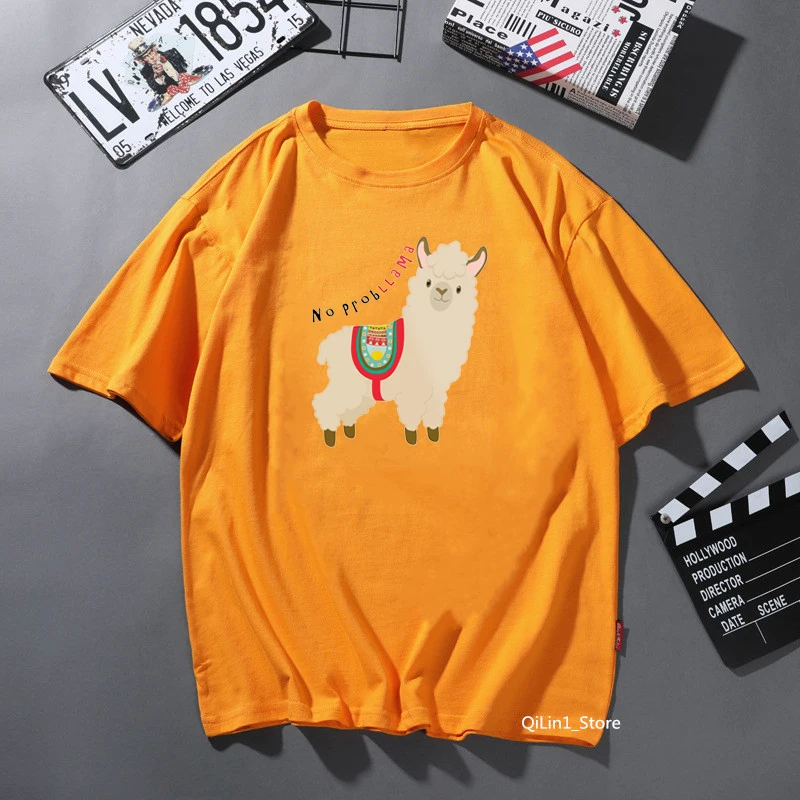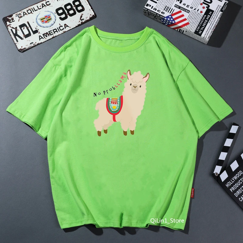 Женская одежда 2022 Футболка с принтом ламы Альпака Женская милая футболка в стиле Харадзюку Розовая Желтая Однотонная футболка женские летние топы Футболка