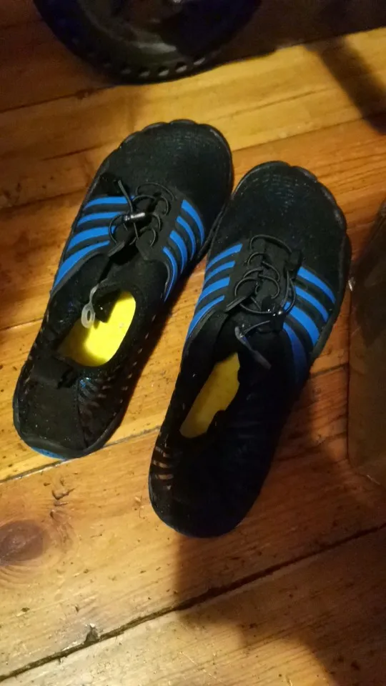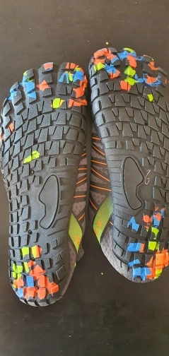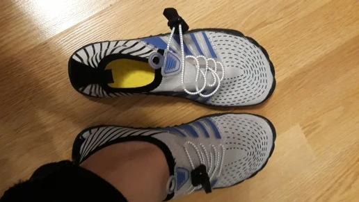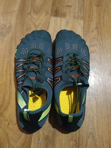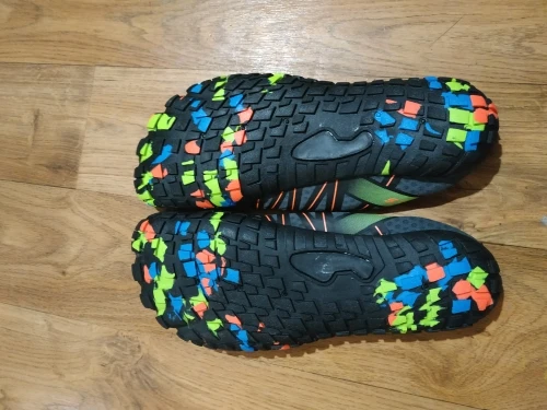 Прекрасная обувь для любителей открытых водоёмов. отлично подойдут для сплава на карте или для купания в Средиземном море. Подошва не скользит. Сохнут быстро. Надёжно держатся на ноге и не мешают плаванию. В таблице размеров немного не соответствуют размеры и см. Размер 44 (10) подошёл на ногу 28,5см!!! Товар доставлен в Украину за 2 недели.