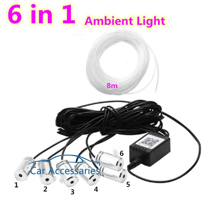Гибкие автомобильные лампы для атмосферы, 6 в 1, с RGB-подсветкой, с управлением через приложение, 8 м