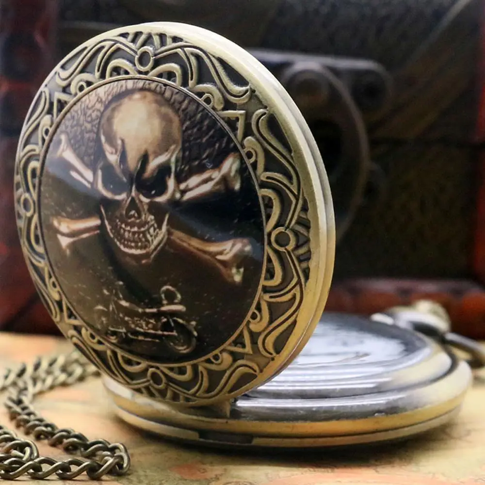 Готические дизайнерские часы в стиле черепа и костей, ретро часы с подвеской в виде черепа зла, охотника, цепочка-брелок, лучший подарок для мужчин и женщин, Часы