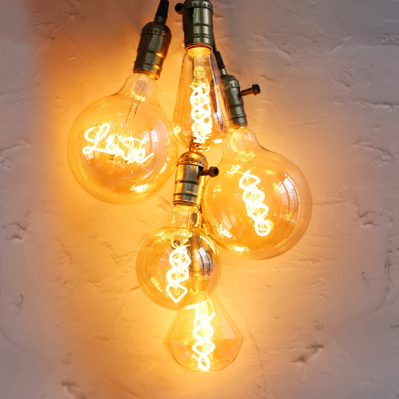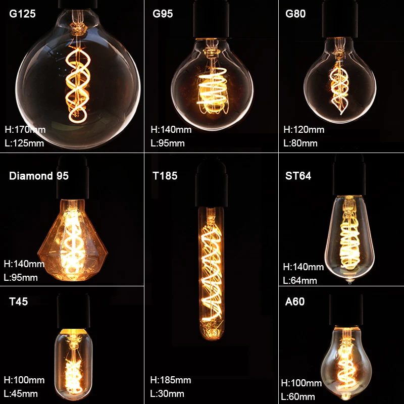 Ретро Светодиодная лампа накаливания спиральная лампа E27 A60 T45 ST64 T185 G80 G95 G125 4 Вт декоративное освещение ретро винтажная Светодиодная лампа Эдисона