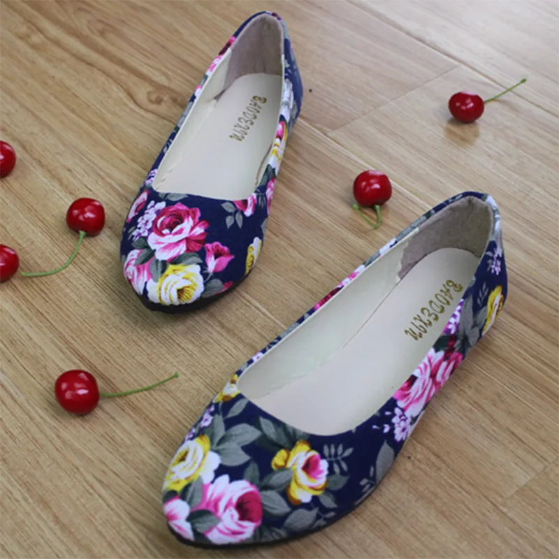 Женские туфли на плоской подошве, с цветочным принтом, размера плюс, лоферы с закрытым носком