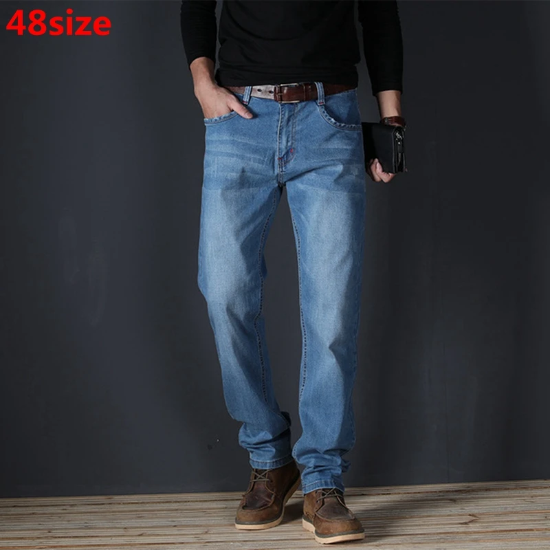 Мужские джинсы большого размера, мужские прямые зауженные мужские джинсы со средней посадкой, джинсы стрейч большого размера, мужские прямые джинсы 44 46