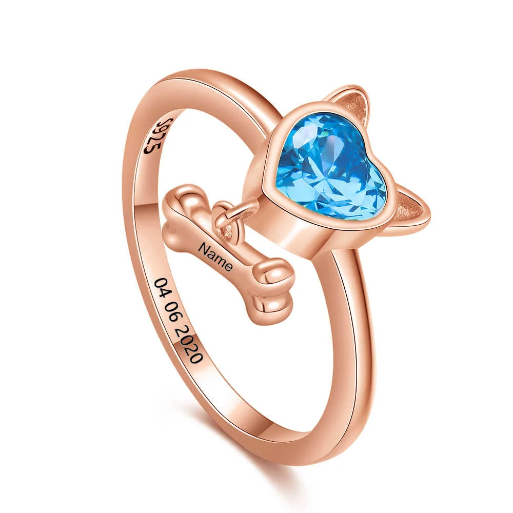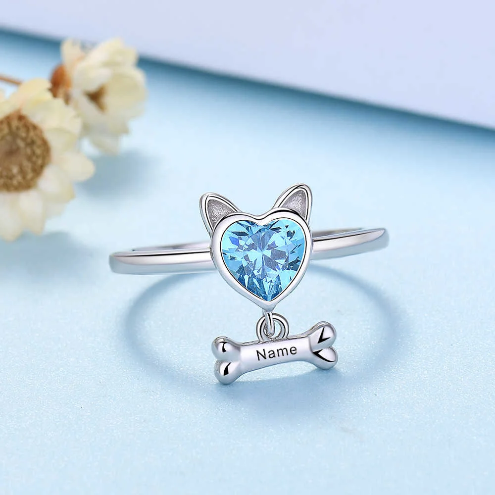 Персонализированное кольцо, серебряное кольцо на заказ, кость собаки с гравировкой имени, светит камень, памятная собака, лучший подарок, бесплатная доставка