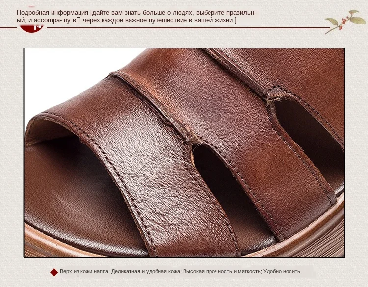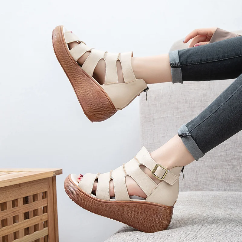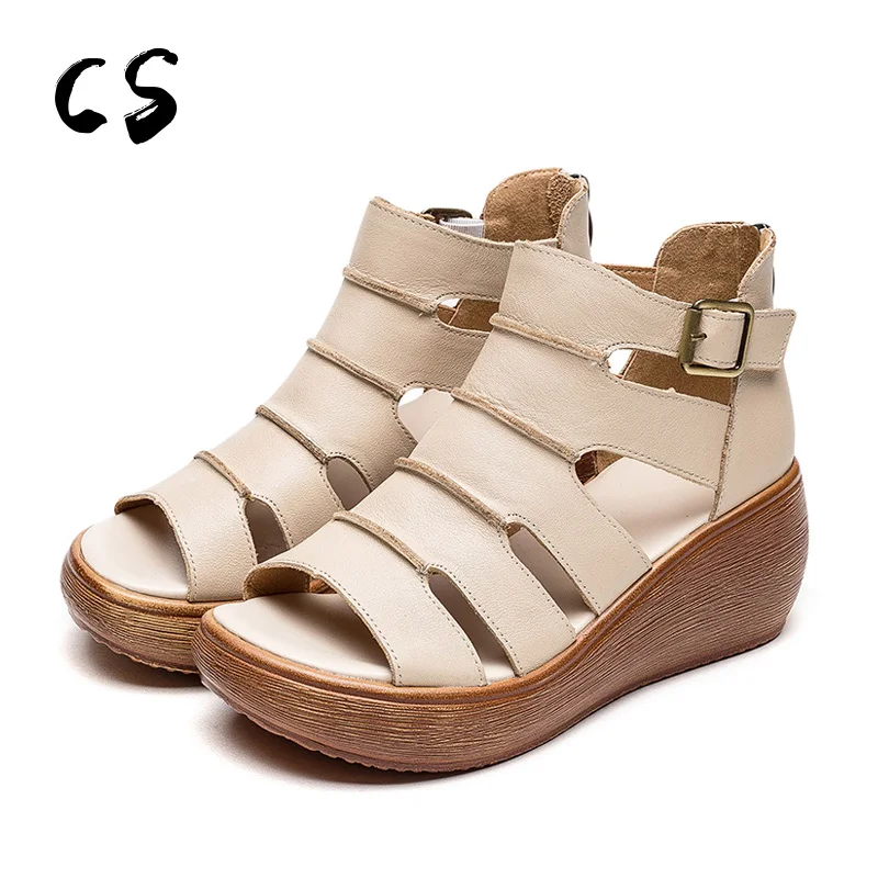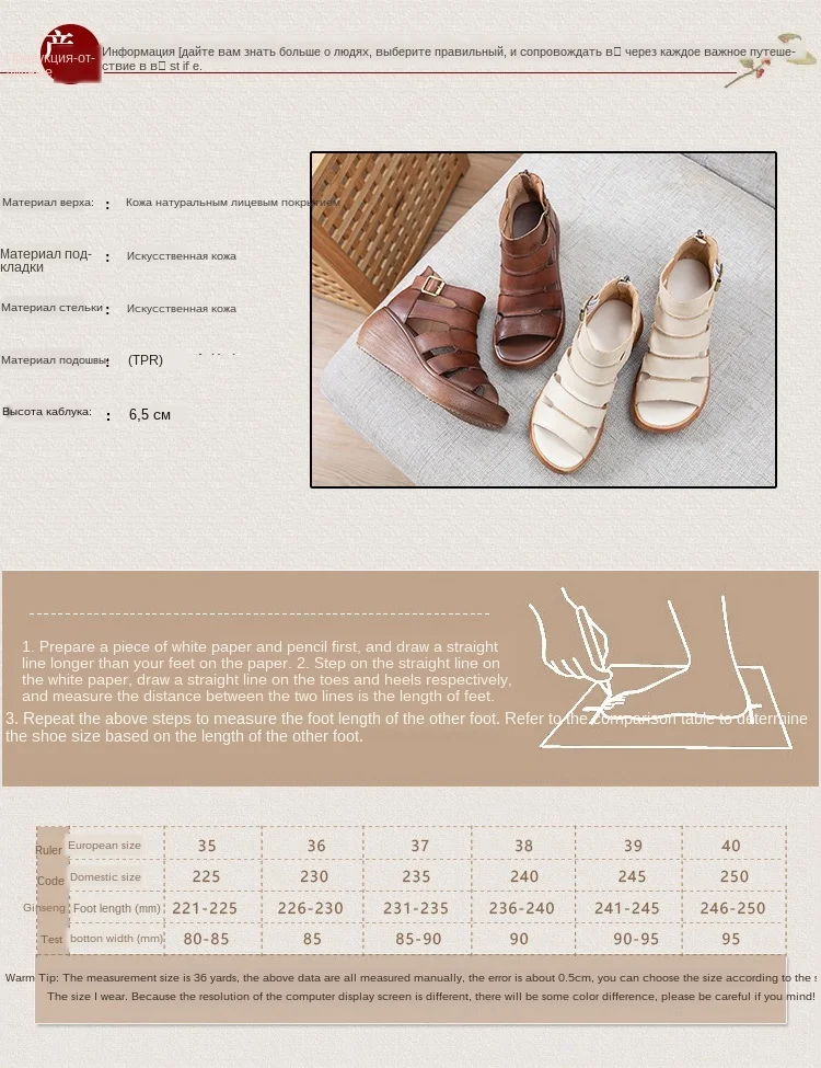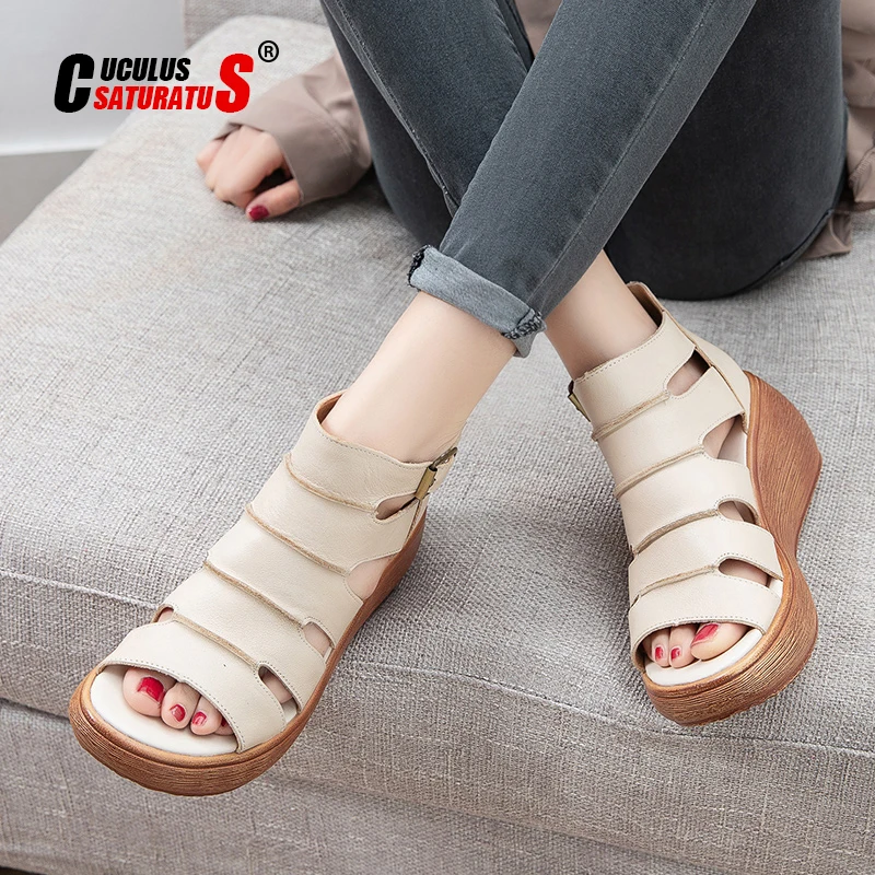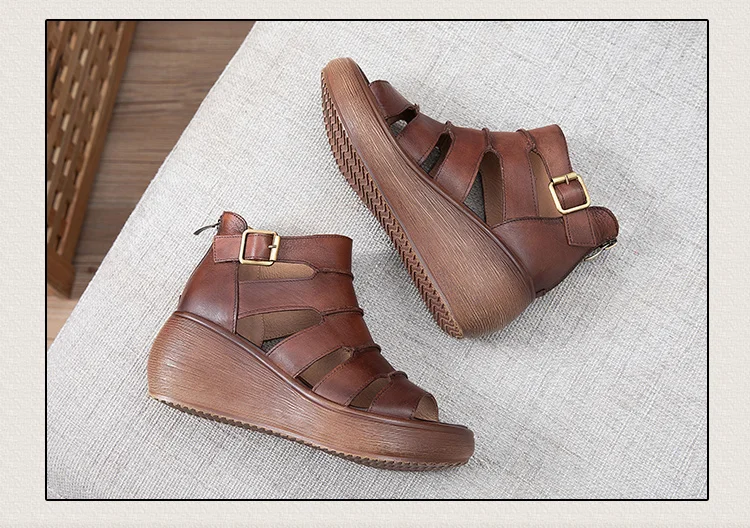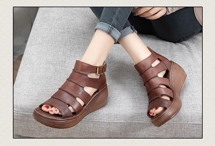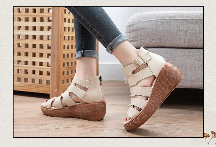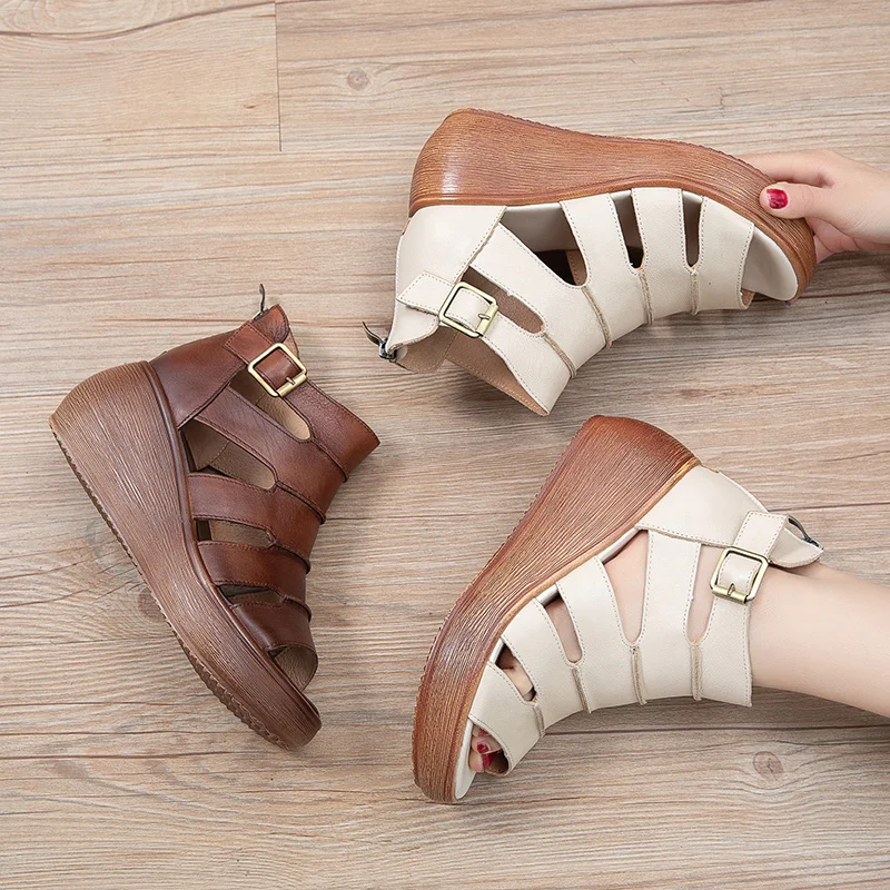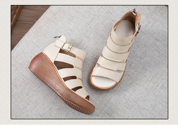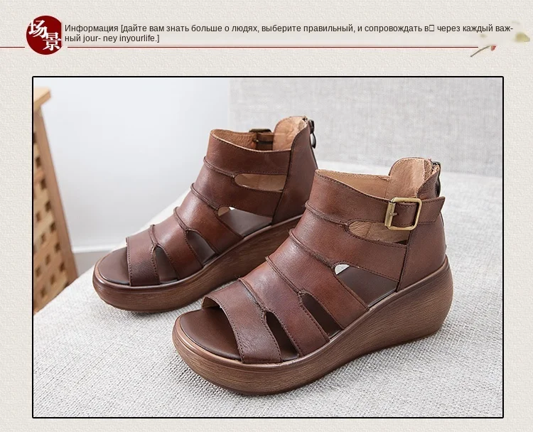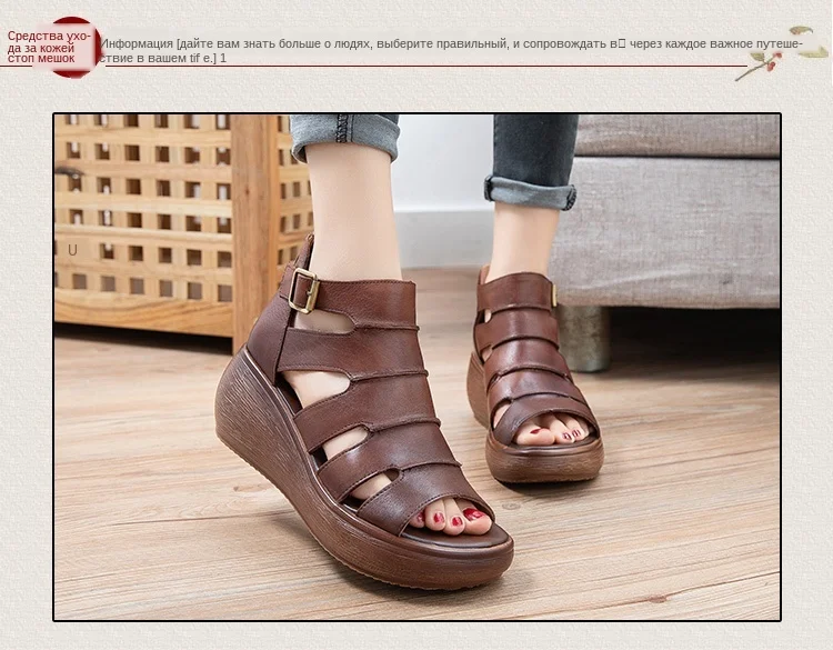 Сандалии женские из натуральной кожи, летние, с вырезами, на танкетке, 2021