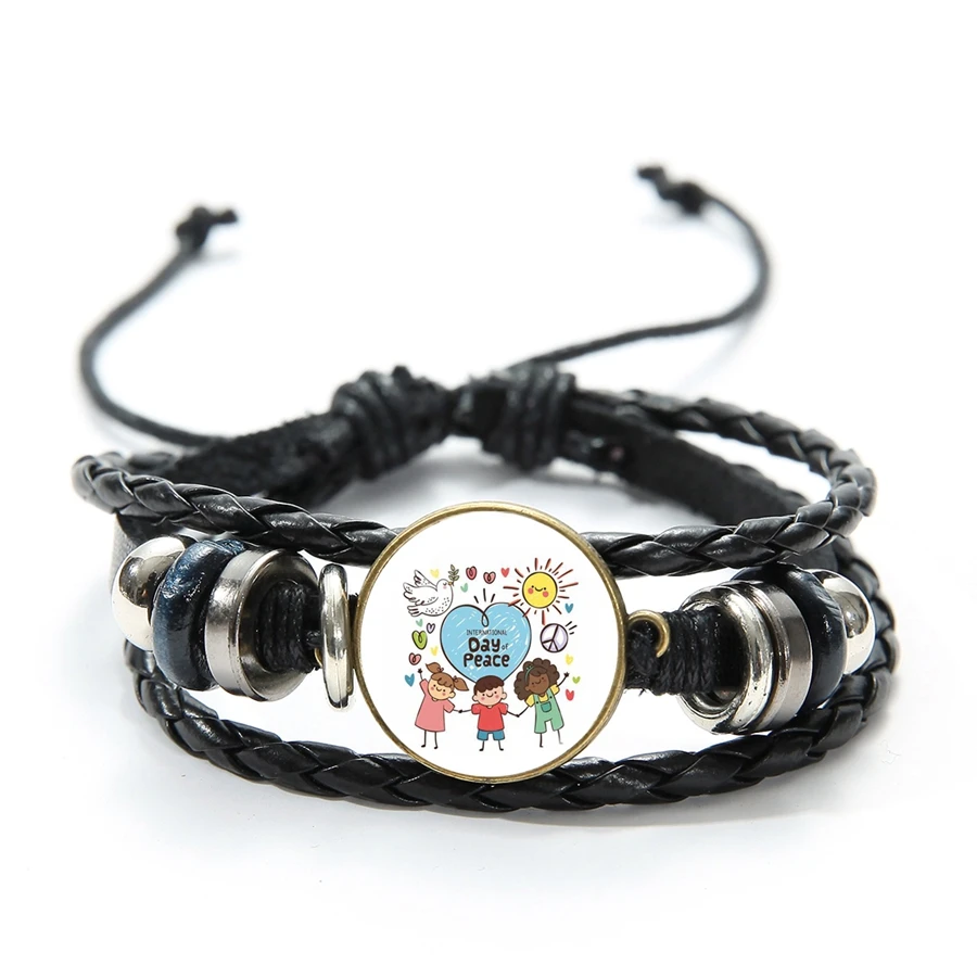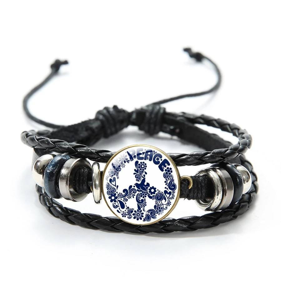 Браслеты Hippie с надписью мира, художественные браслеты с пальцами, панк-дизайн, стеклянные зеркальные бусины, браслет для женщин и мужчин, новый модный браслет