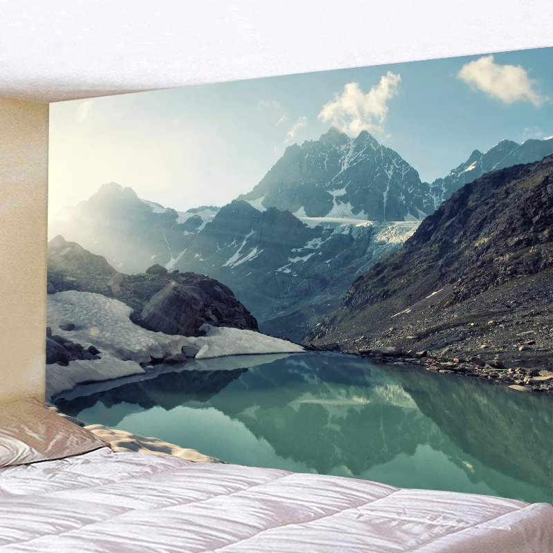 Недорогой гобелен горы голубого озера, настенный подвесной пейзаж, зеленые луга, художественная настенная ткань, Тонкий Потолочный декор, одеяло, фон