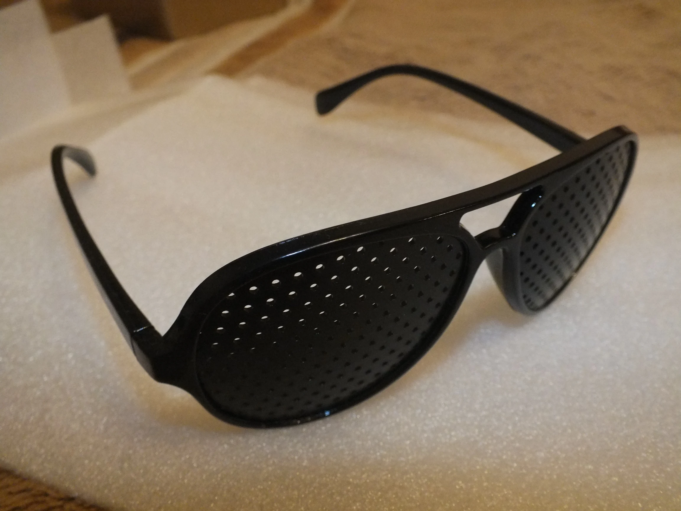 Дошло до Томска за 25 дней. Очки изготовлены качественно, плюс форма оригинальня, довольно "модная". Раньше я тренировал глаза упражнениями но сейчас некогда и одеваю очки. Чувствуется что глаз реаьно напрягается как при упражнениях. Значит это реально помогает поддерживать зрение. Спасибо продавцу за качественный и недорогой товар!