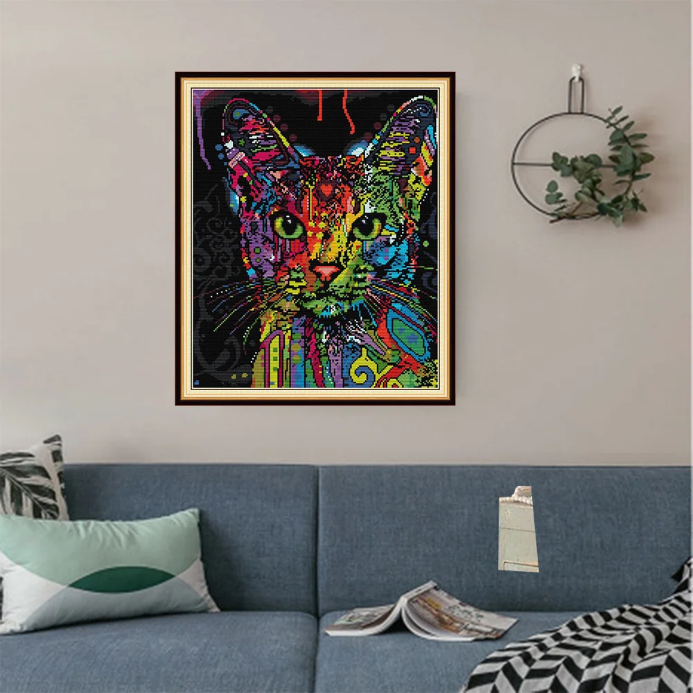 HUACAN вышивка крестиком наборы кошка белый холст украшение дома жи...