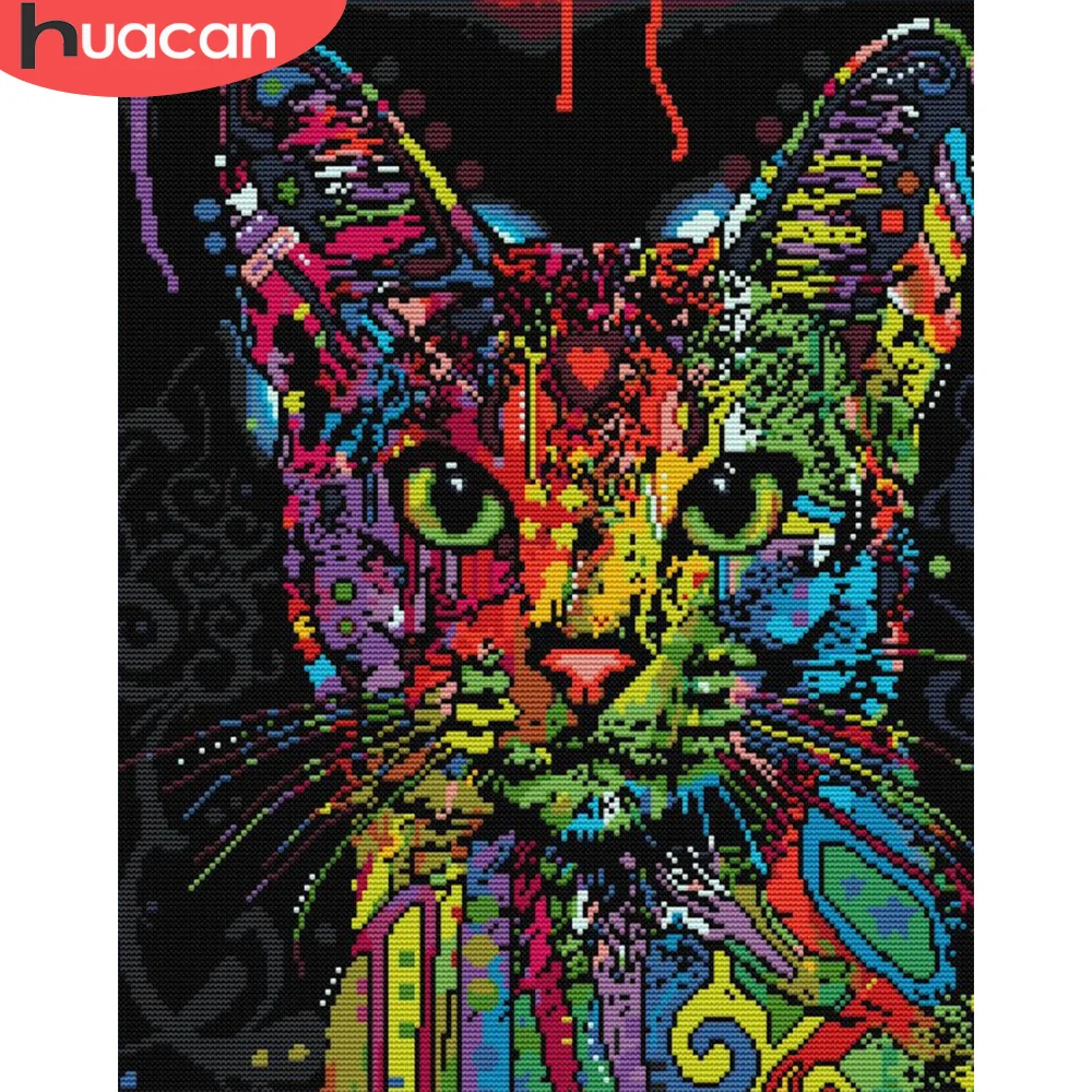 HUACAN вышивка кошка животное вышивка крестиком цветок рукоделие На...
