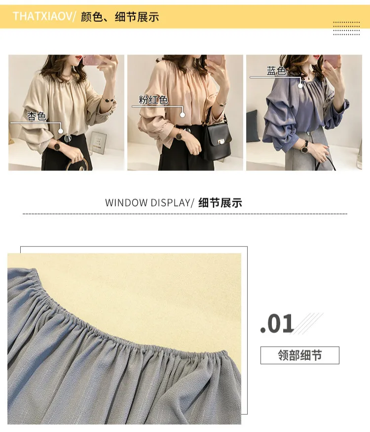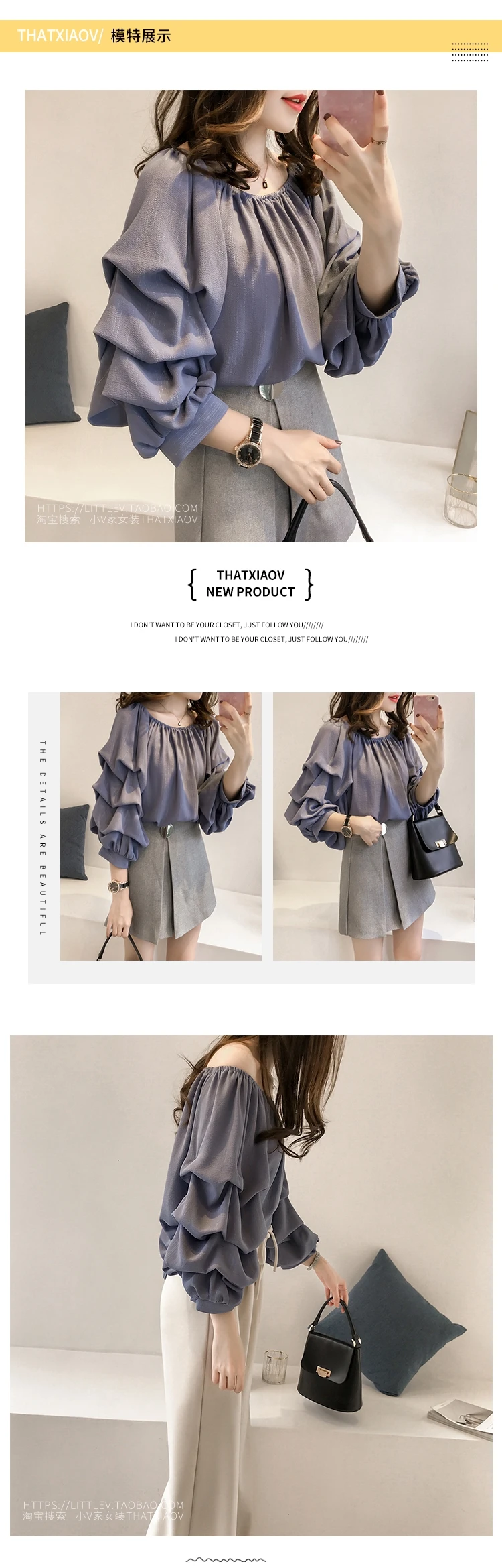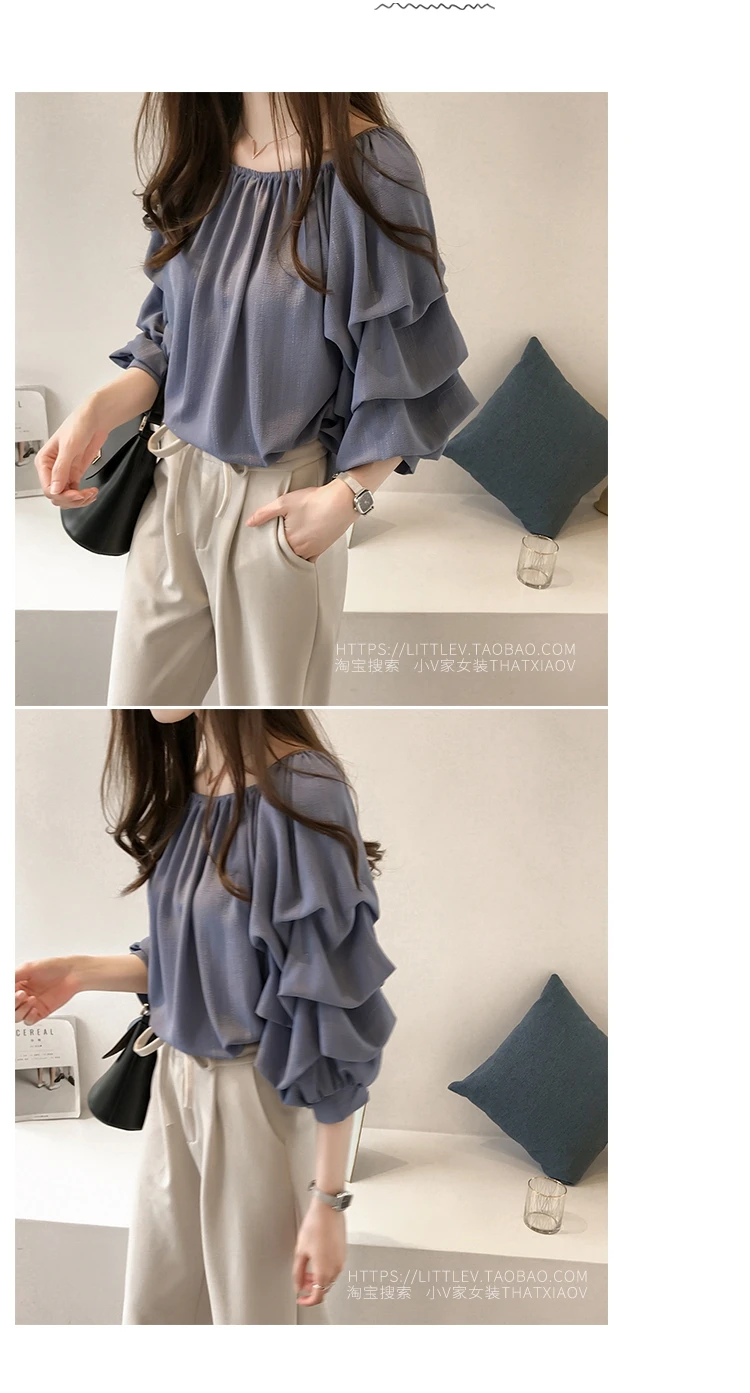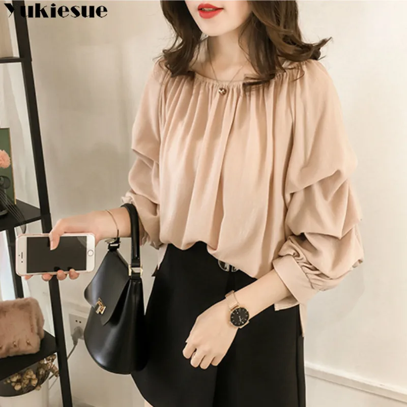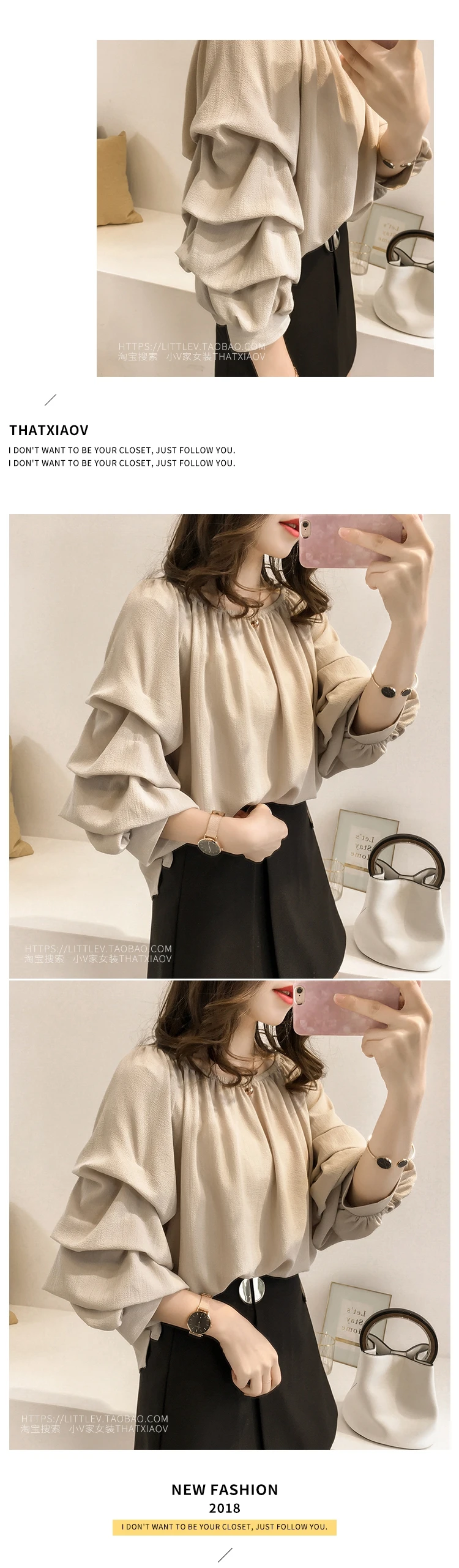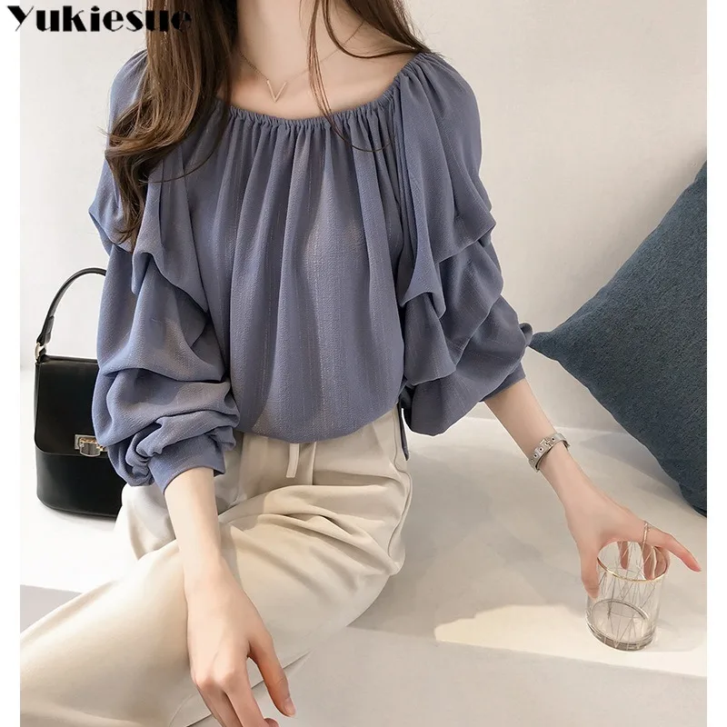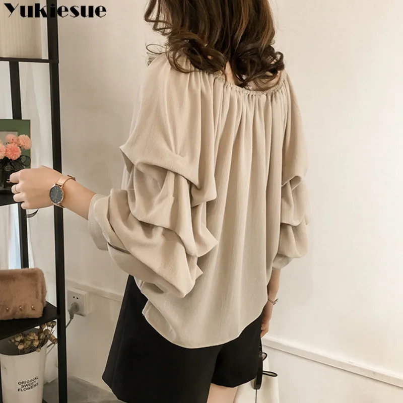 Рубашка в стиле Харадзюку Женская с длинным рукавом, Элегантная блузка с пышными рукавами, топ и блузы шифоновые рубашки, размера плюс, на лето