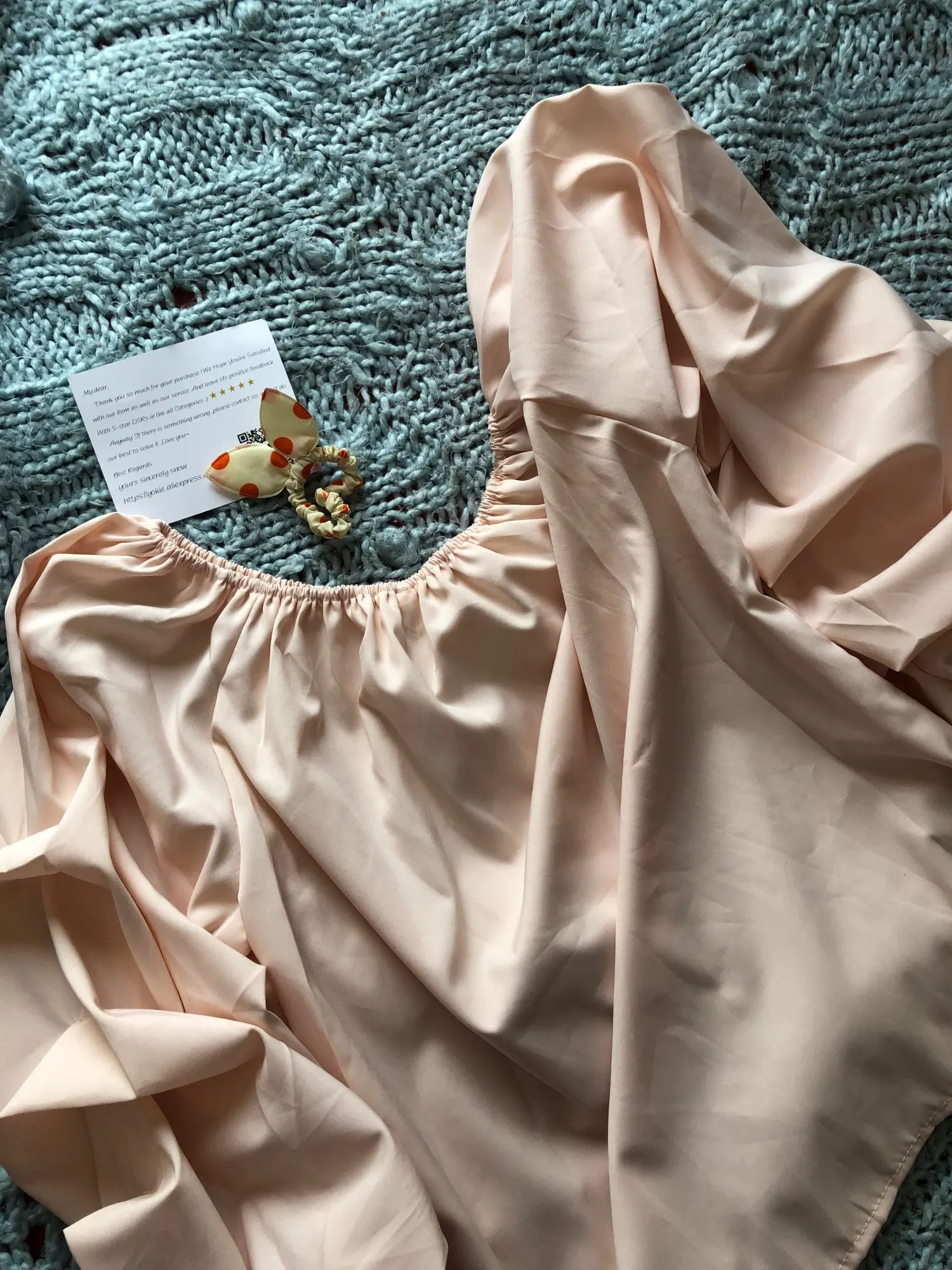 Товар прибыл в идеальном состоянии! В комплект входит небольшой подарок и приятное сообщение. Очень мило! Цвет мягкий розовый. Горловина немного шире, чем я ожидала, потому что на фото она выглядит более плотно. Это больше, чем я ожидала, возможно, я заказал слишком большой, но имейте в виду, что размеры больше, чем вы думаете. Качество не такое мягкое и не может быть таким свежим в жару. Доставка занимает месяц. В целом, я доволен!
