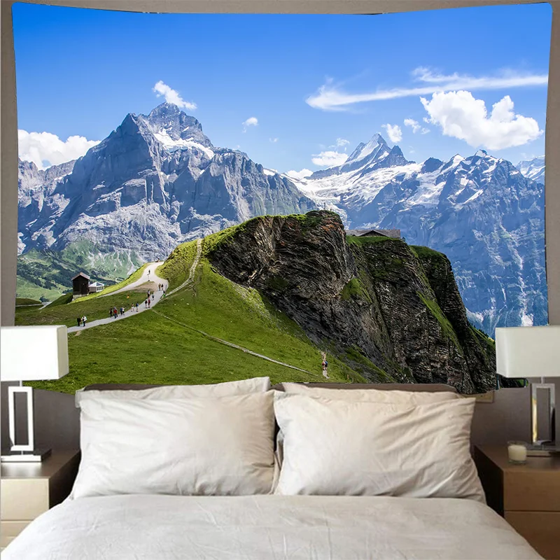 Горный лес озеро гобелен дешевые природные пейзажи настенные искусства тонкий полиэстер висит Ткань Потолок покрывало домашний декор