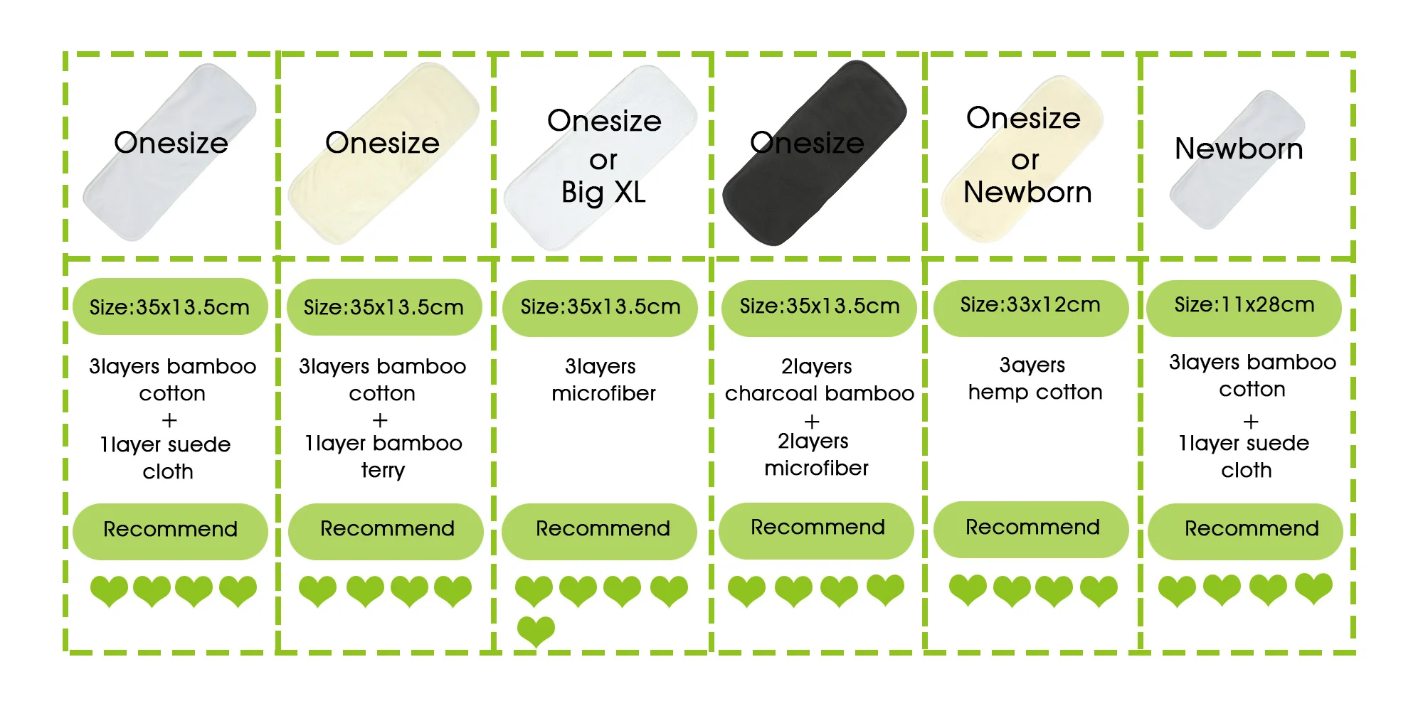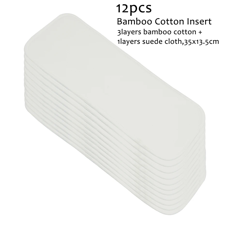 Наша вставка из бамбукового хлопка состоит из 3 слоев бамбукового хлопка + 1 слоя замшевой ткани, размер 35x13,5 см. Подходит для всех наших карманов, чехлов и подгузников. Обе стороны (бамбуковый хлопок или замшевая ткань) хорошо прикасаются к коже ребенка. Боковая часть из замшевой ткани сохраняет кожу ребенка сухой. Вставки обладают высокой впитывающей способностью.