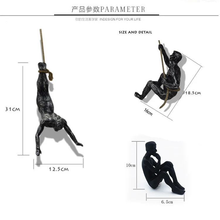Ретро-фигурки для скалолазания, скульптура из смолы, ремесленные настенные украшения, подвесная настенная статуя для гостиной, Настенная декоративная скульптура для спортсменов