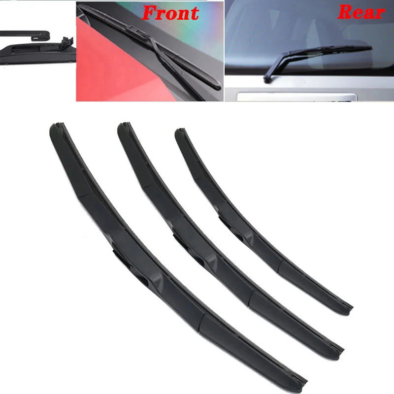 Передний и задний стеклоочиститель:2 передних дворника и 1 задний дворник Особенность: Индивидуальная подгонка, прямая замена старым. 1 миллион раз протирания. Температурный допуск: от + 158F до-40F (от + 70C до-40C) Память натяжения обеспечивает равномерное давление по всей длине лезвия Специально Смешанная резина обеспечивает максимально гладкое, чистое, безвибрационное протирание Высококаче@@ ственный дизайн знач@@ ительно сни@@ жает со@@ проти@@ вление, шу@@ м и вет@@ ЕР Предотвращает образование льда и снега из-за воздействия металлических/пластиковых компонентов Инструкция: этот товар не поставляется с ручной установкой