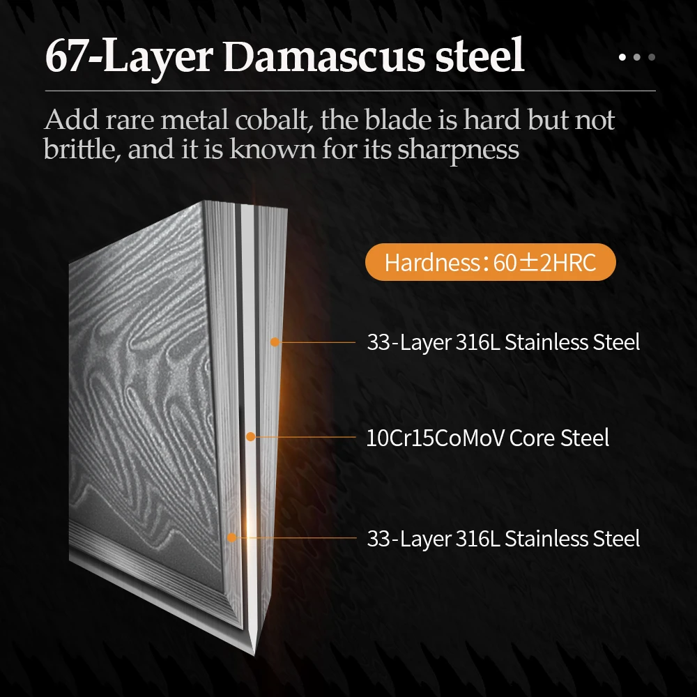 Материал лезвия:67 слоев Дамасская супер сталь