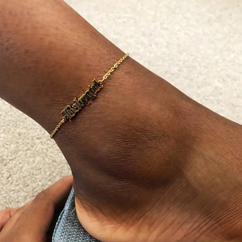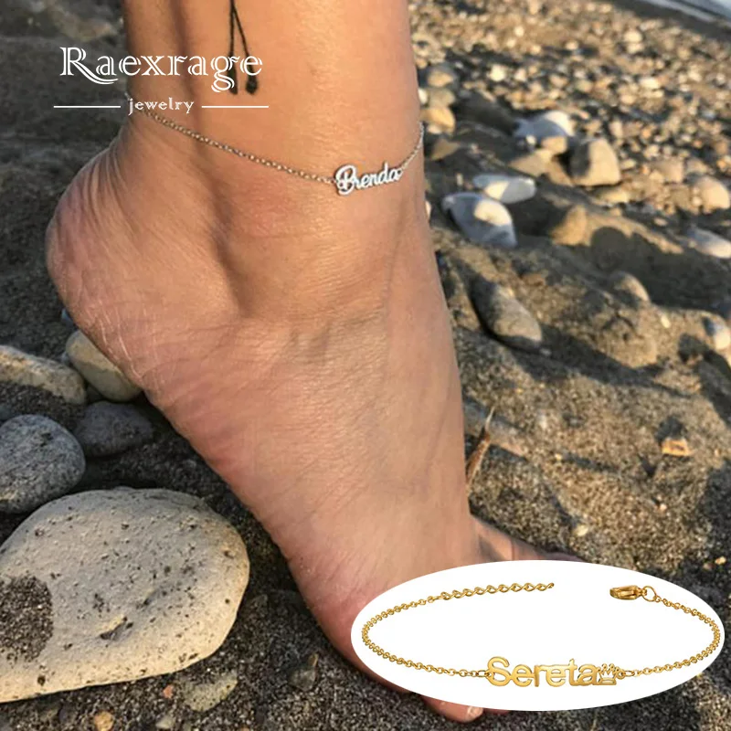 Браслет на ногу Raexrage из нержавеющей стали с именем для женщин и девушек, кубинская цепочка с буквами, персонализированные украшения для пляжа