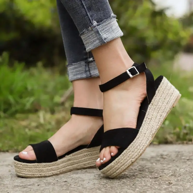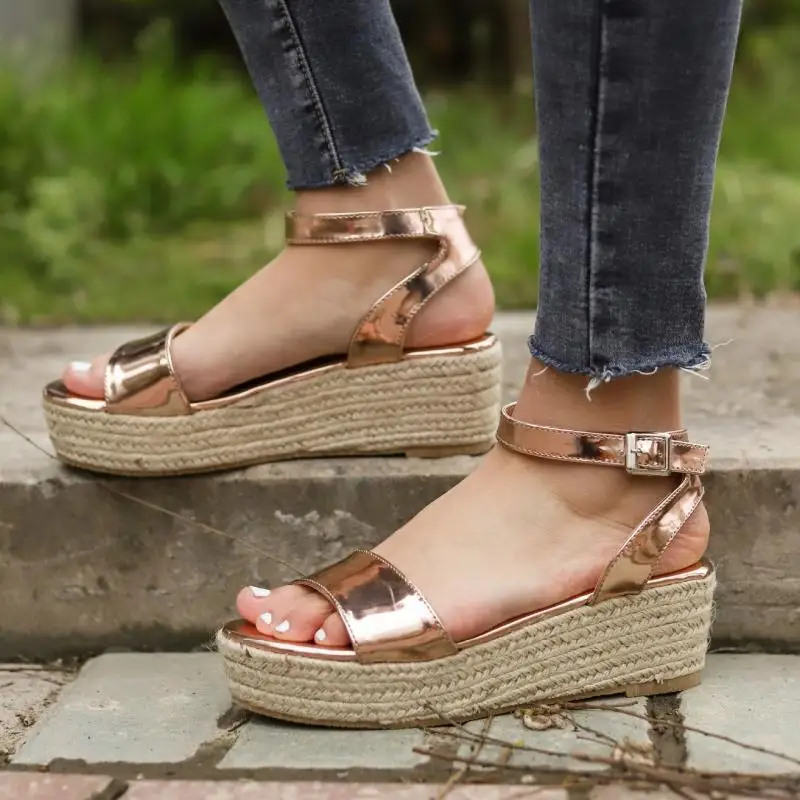 Босоножки на танкетке женские, модные пляжные сандалии на высоком каблуке, туфли-лодочки на платформе, повседневные сандалии с открытым носком и ремешками, размер 35-43, лето 2020