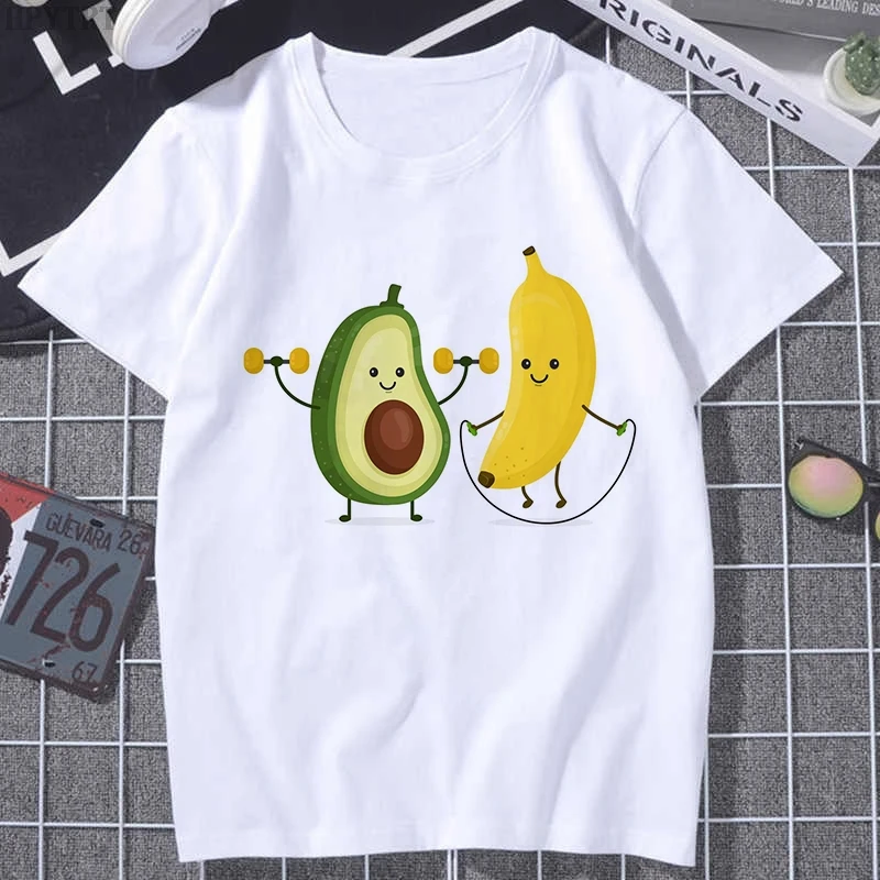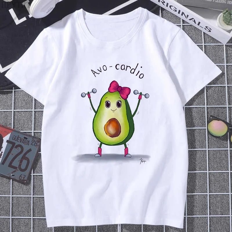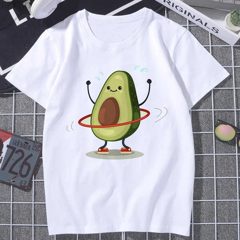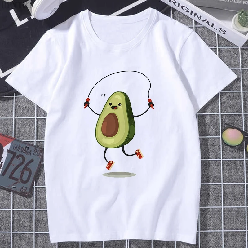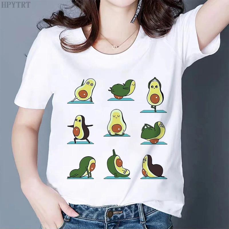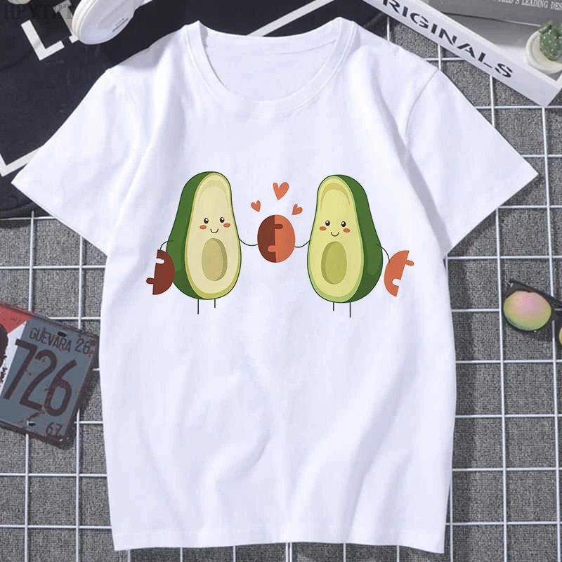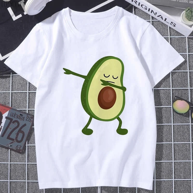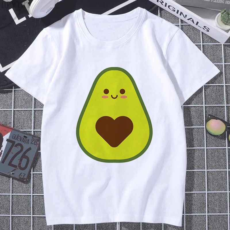 Футболка женская с коротким рукавом, милый мультяшный рисунок авокадо, в стиле Харадзюку, в стиле 90-х, модный топ в Корейском стиле, на лето