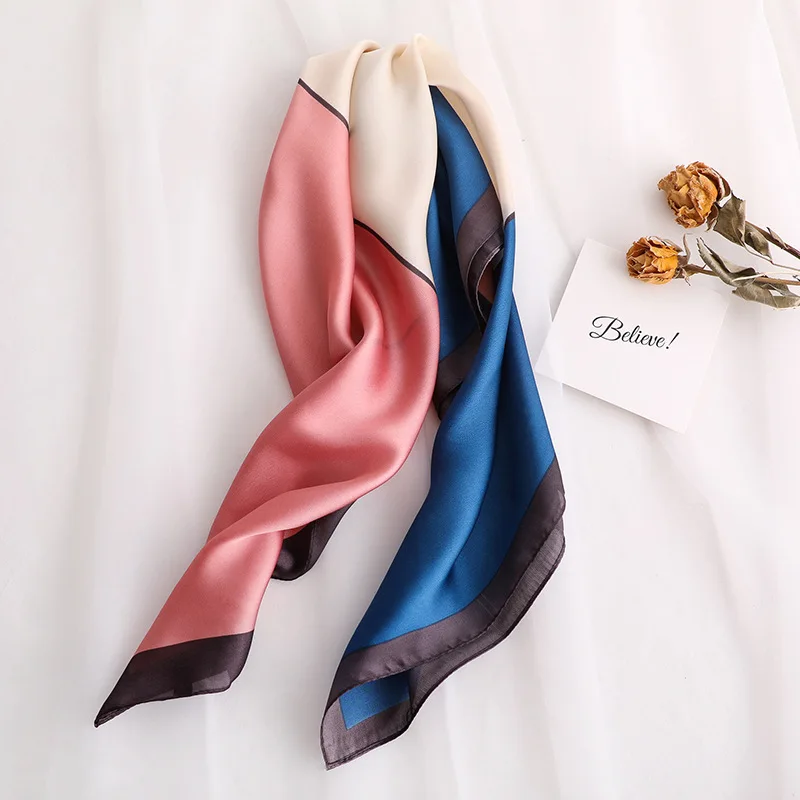 Новинка 2020, Модный летний Шелковый квадратный шарф, Однотонный женский сатиновый шейный ободок для волос, мягкая пляжная повязка на голову, женский платок