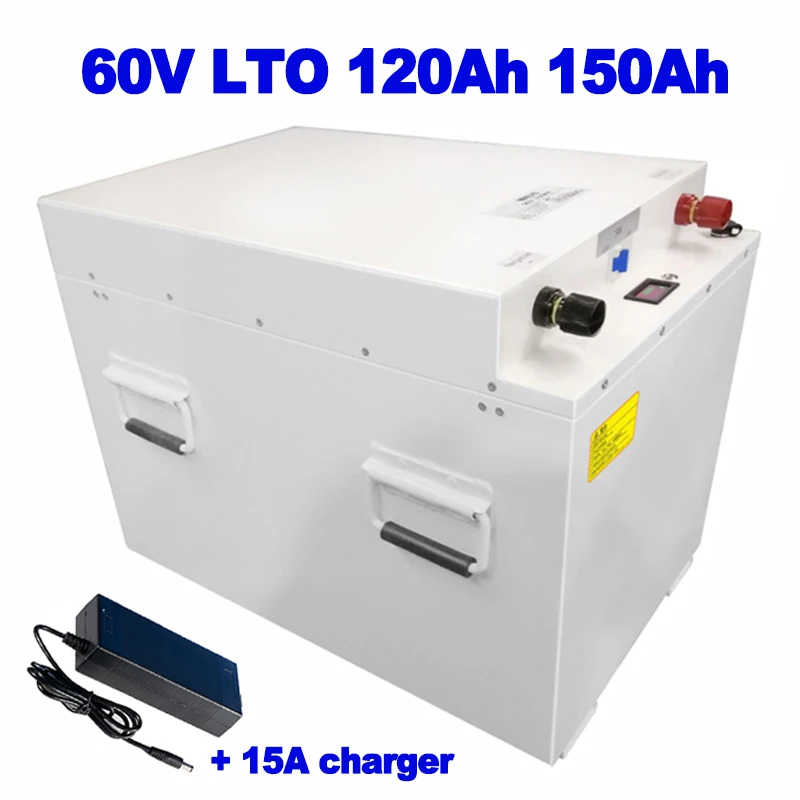 Литий-титанатный аккумулятор LTO 60 в 120 Ач 150 Ач, Солнечная ветровая энергия AGV, электрическая уличная уборочная машина, Интеллектуальный робот EV RV + 15 А, зарядное устройство