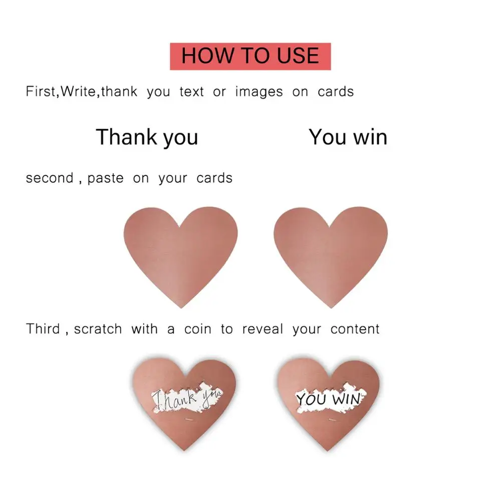Просто Наклейте и поцарапайте! Создать свои собственные скретч-карты очень просто! Ознакомьтесь с изображениями товаров и посмотрите, что делают другие! Вставить. Наклейте скребок поверх содержимого. Это как обычная наклейка. Царапина! Поцарапайте монеткой, чтобы раскрыть свой контент! Между «скретч-слоем» и вашей бумагой есть пленка, чтобы ваше содержимое было защищено! Размер: 1 дюйм/25 мм наклейки в форме сердца: 300 шт. Если у вас лучше игровой процесс, вы можете отзывы в и поделиться счастьем.