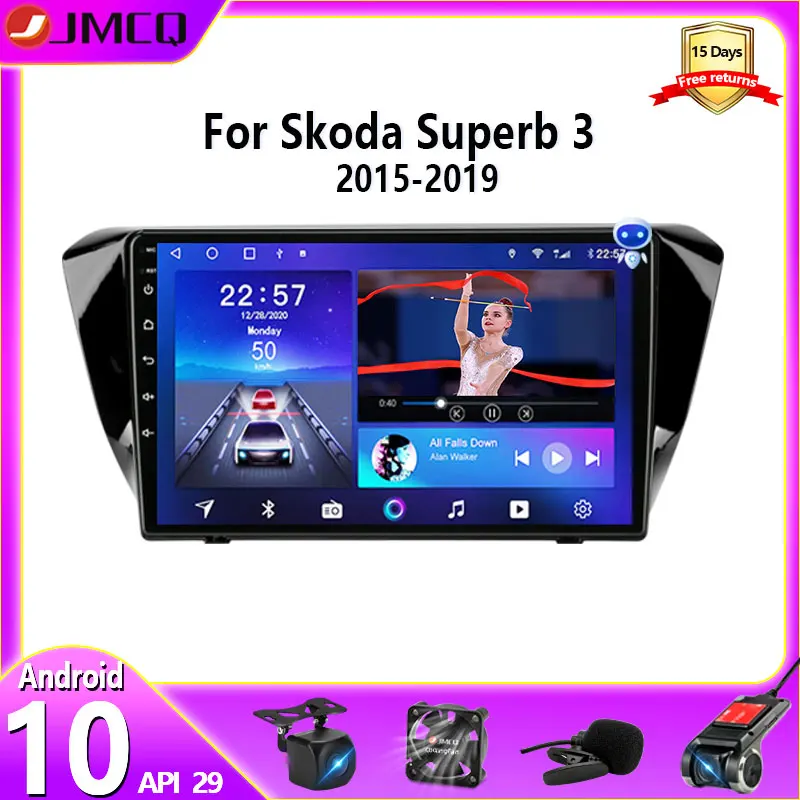 Автомагнитола JMCQ на Android 10,0 для Skoda Superb 3 2015-2019 мультимедийный плеер GPS-навигация 2 Din DSP RDS раздельный экран с рамкой