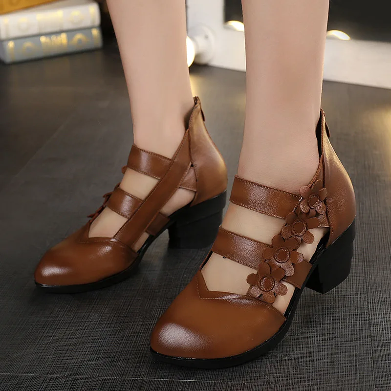 Сандалии женские из натуральной кожи на толстом каблуке с закрытым носком
