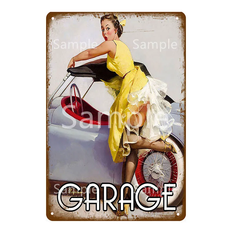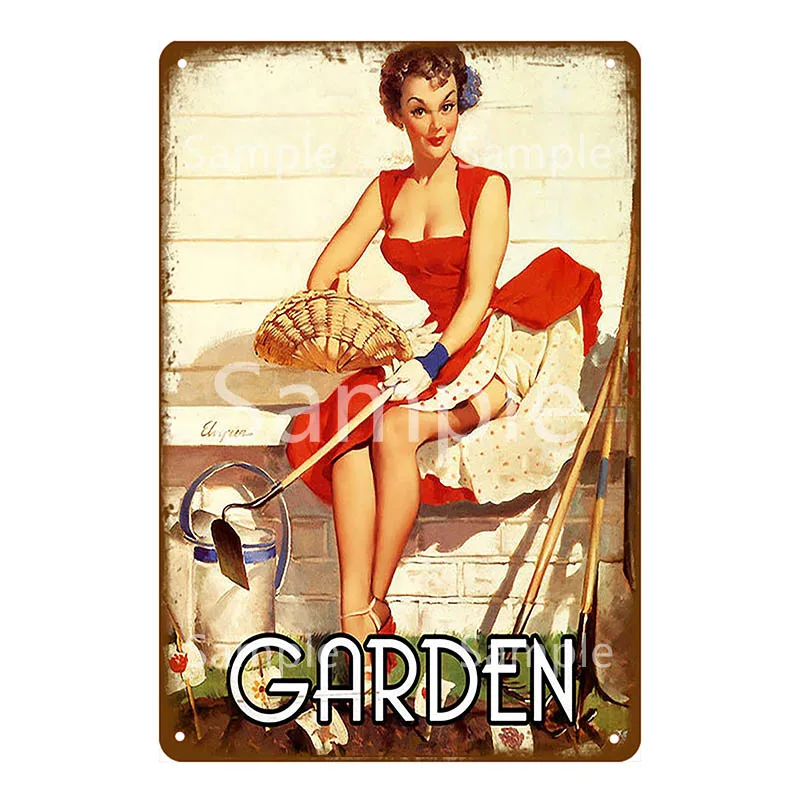 Декоративные настенные тарелки YK068 для украшения сада, гаража, гардеробной, винтажный постер с изображением девушки из олова, для бара, кафе, паба, домашнего декора