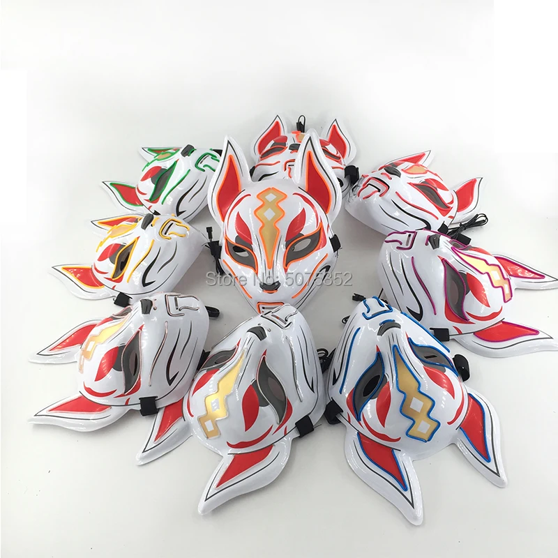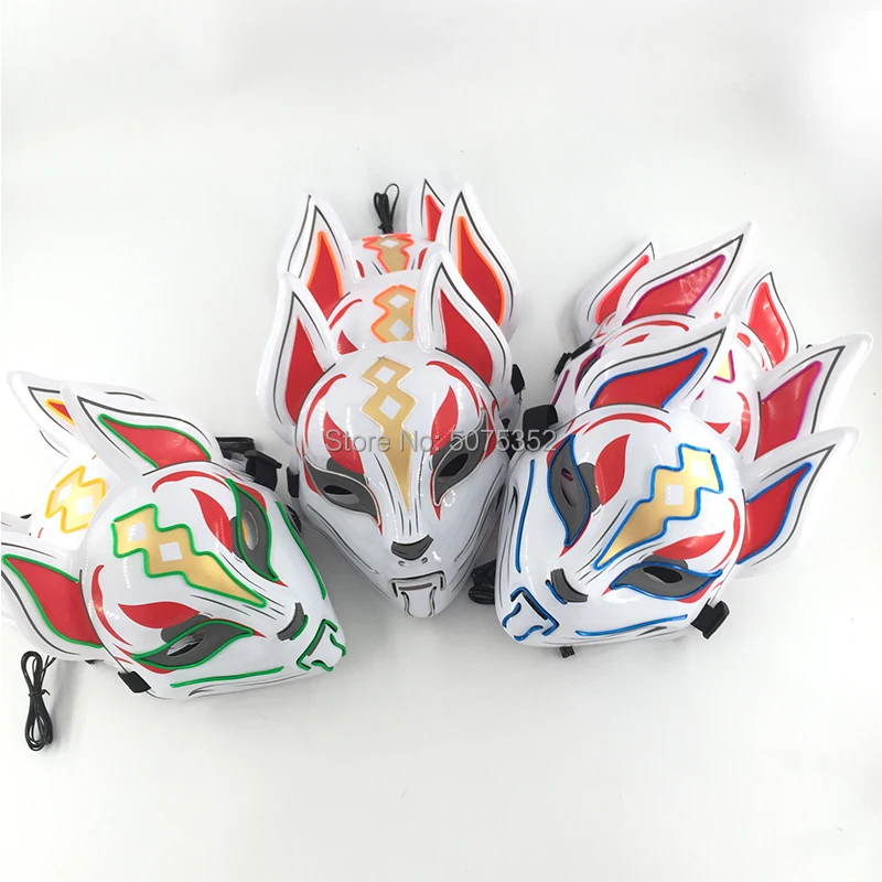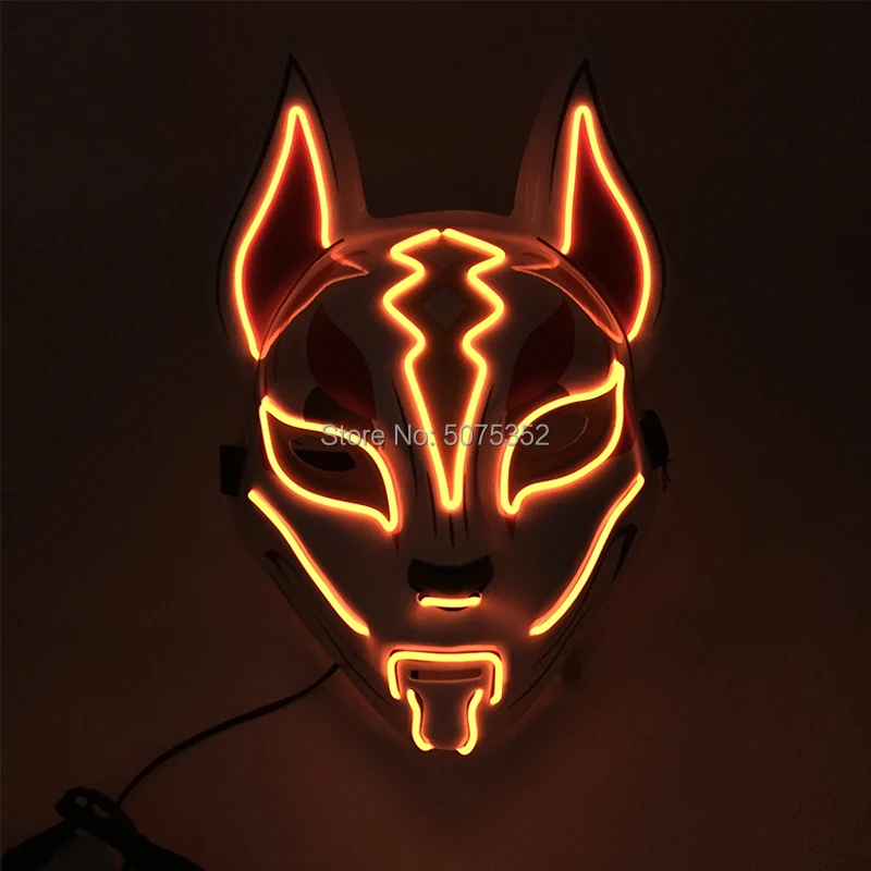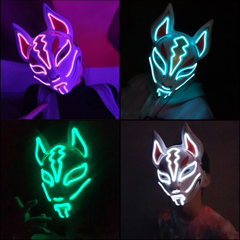 Лидер продаж 2021 светодиодный ная маска для Хэллоуина, лиса, светящаяся маска, японская маска, светодиодная Маска для костюма рейва, маска, украшение, реквизит для косплея