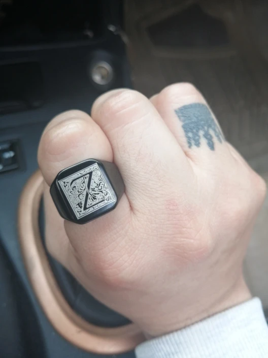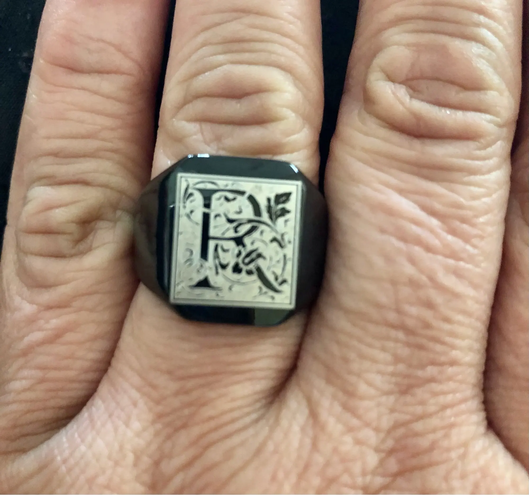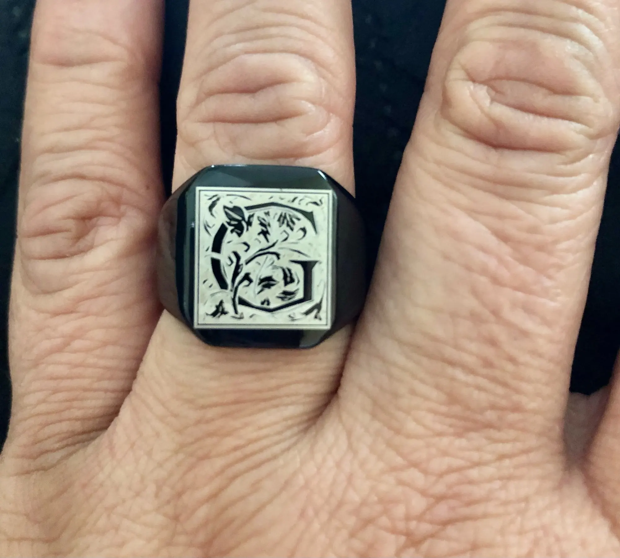 Мужское кольцо с монограммой, из нержавеющей стали, с плоским верхом